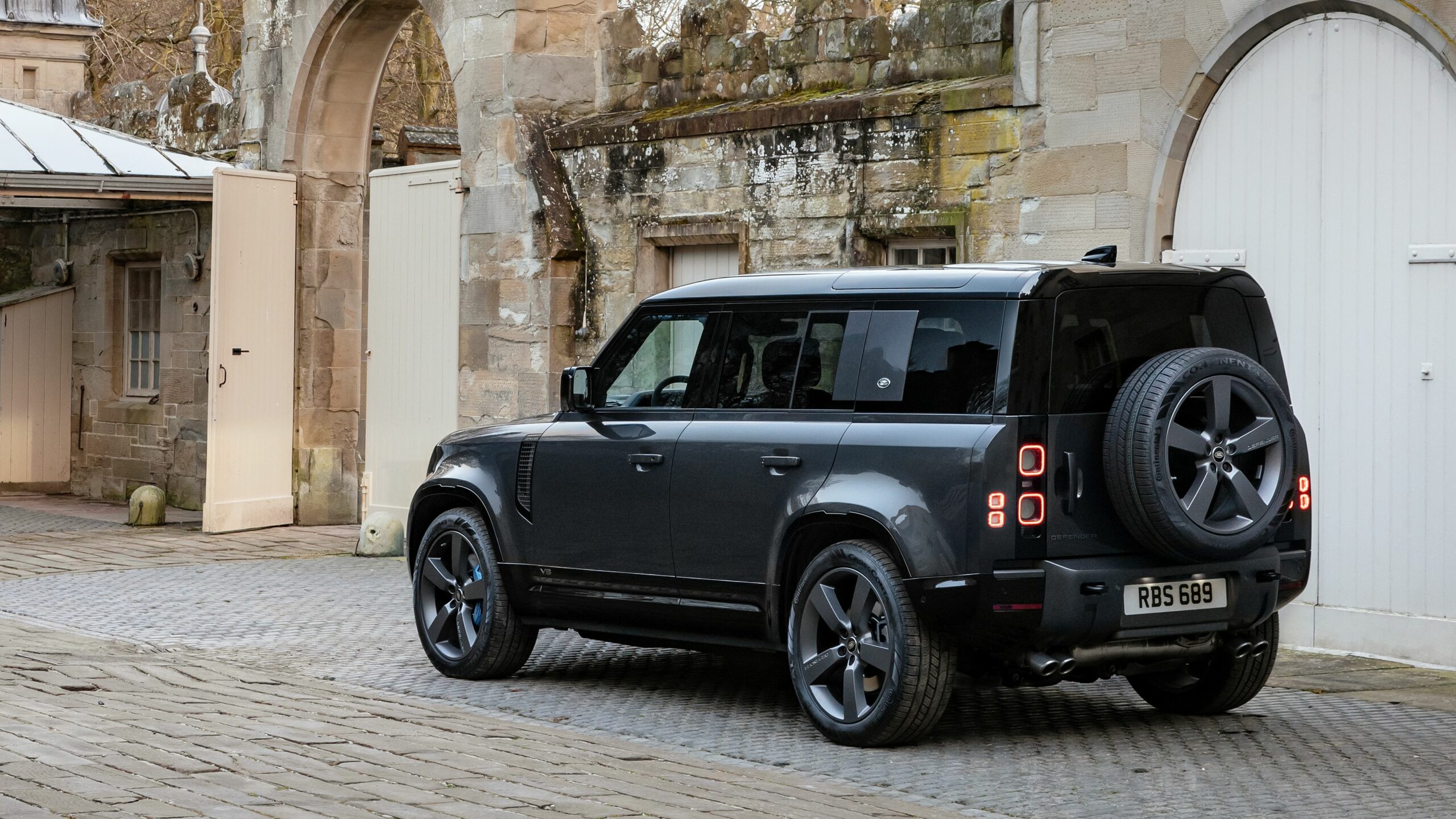 Az ötliteres, 525 lóerős V8-as blokk a háromajtós 90 és az ötajtós 110 kivitelben is elérhető, előbbi esetében a 0-100 km/h-s sprint 5,2 mp-ig tart, amivel ez a valaha gyártott leggyorsabb Defender, végsebessége 240 km/h. Finomhangolták a futóművet és a felfüggesztéseket, stabilizálták a terepjárót a nagy tempójú kanyarok bevételéhez, és az új differenciálzár föld- és műúton egyaránt igyekszik a hatalmas teljesítményt a lehető legjobban átvinni a kerekeken. Még egy kezdetleges driftmódot is kapott a V8-as modell, amivel befolyásolható a farolás mértéke. Kívül a négy kipufogó, a 22 colos felnik, metálkék féknyergek és persze a V8-as jelvények különböztetik meg a kistestvérektől. Bő 40 millió forintos ára mellett persze ez a minimum, bár tény, hogy talán ez lesz az egyik utolsó V8-as Defender, 2030-tól ugyanis csak villanyhajtással lesz kapható.