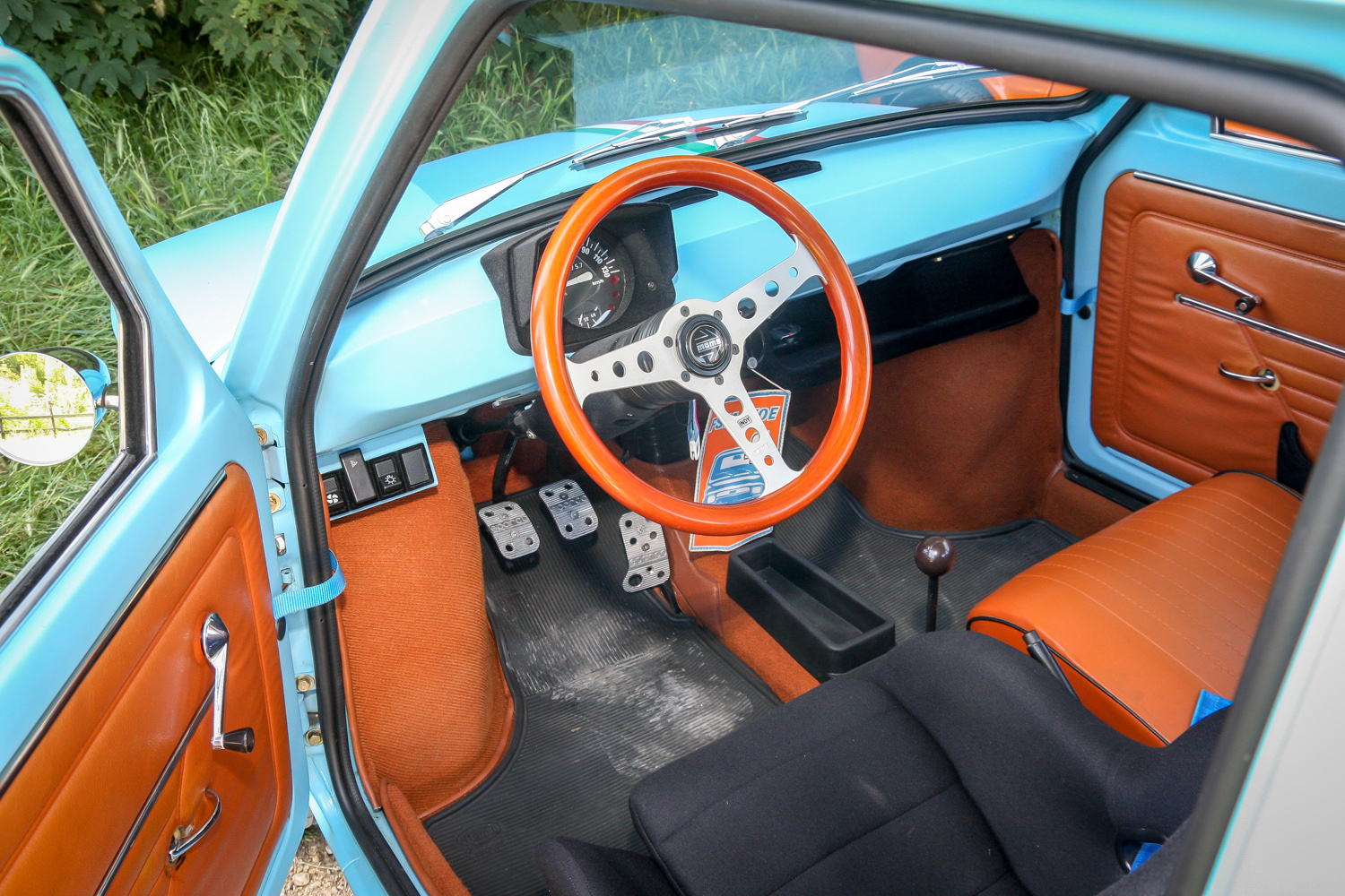 Az ismert narancsos színűt rendszáma után Cecilnek, a spéci matt kéket szimplán kisautónak hívja. Az ilyen állapotban ritka kincs narancs 1977-es évjáratú, 171 ezer km-t futott, majdnem mindene gyári eredeti, a kék egy kvázi új kocsi amúgy 86-os születéssel. Nekem a 23 lóerős 600-as narancsot van szerencsém vezetni, az újabb 650-es és már kemény 24 lovas kék viszont – némi sofőri trükkel – ALS-es Subarukat megszégyenítően durrog és robbantgat előttem az óbudai forgalomban. Négypontos övvel a kagylóülésbe szorítva ömlik rólam a víz, de vigyorgok, mint a tök, s kezdek szerelembe esni. Szerencsére Obrotka Gyula, a tulaj nem féltékeny, ő mondjuk már 11 éve Kispolszki-fertőzött.