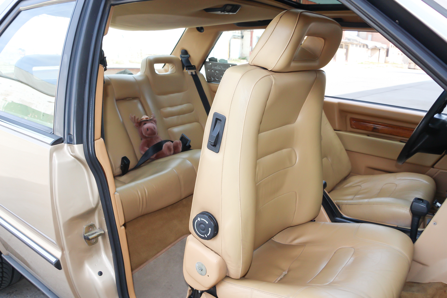 A vezetőajtó mögé került, külön zárható a tanksapkafedél és a csomagtartó, utóbbi a kesztyűtartóból is elektromosan nyílik. Az ülésállítás minden irányban elektromos és hibátlanul működik 29 évesen is