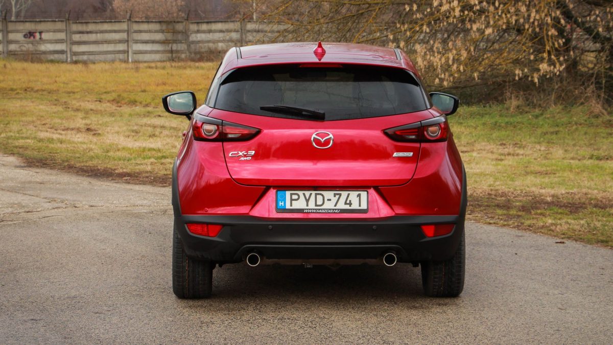 Tavaly felfrissítették kicsit a Mazda CX-3 vonalait, és most a kicsit jelzőt érdemes nagyon komolyan venni. Annyira finoman nyúltak hozzá, hogy szinte észrevehetetlen a külső változás. Nekem is az átlagosnál több időbe telt észrevenni a módosításokat, miközben farkasszemet néztem a kis szabadidő-autóval. Az orrán csak a hűtőmaszkot tudom megemlíteni, amelyen az újdonságot a páros műanyag csíkozás jelenti. Ezek után már hátul sem számítottam nagy változásra és persze nem is történt semmiféle drámai átrajzolás. Újak a hátsó lámpabúrák alatti vonalak, emellett LED-es fények jelentek meg bennük. Ennyi.
