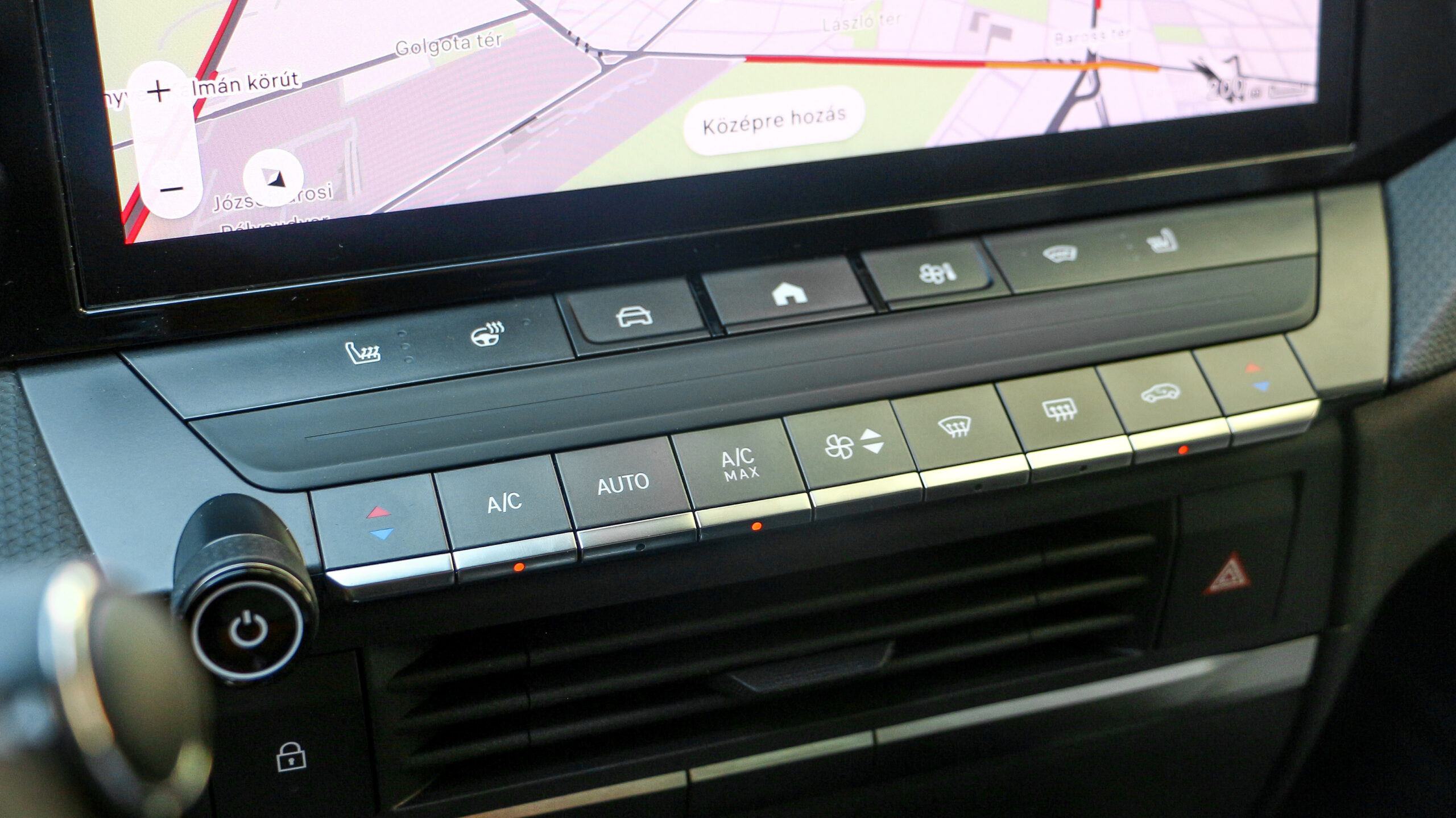 A klímát vezérlő fizikai gombsor örömteli elem, nem kötötték teljesen az érintőképernyőhöz az utastér szellőztetését