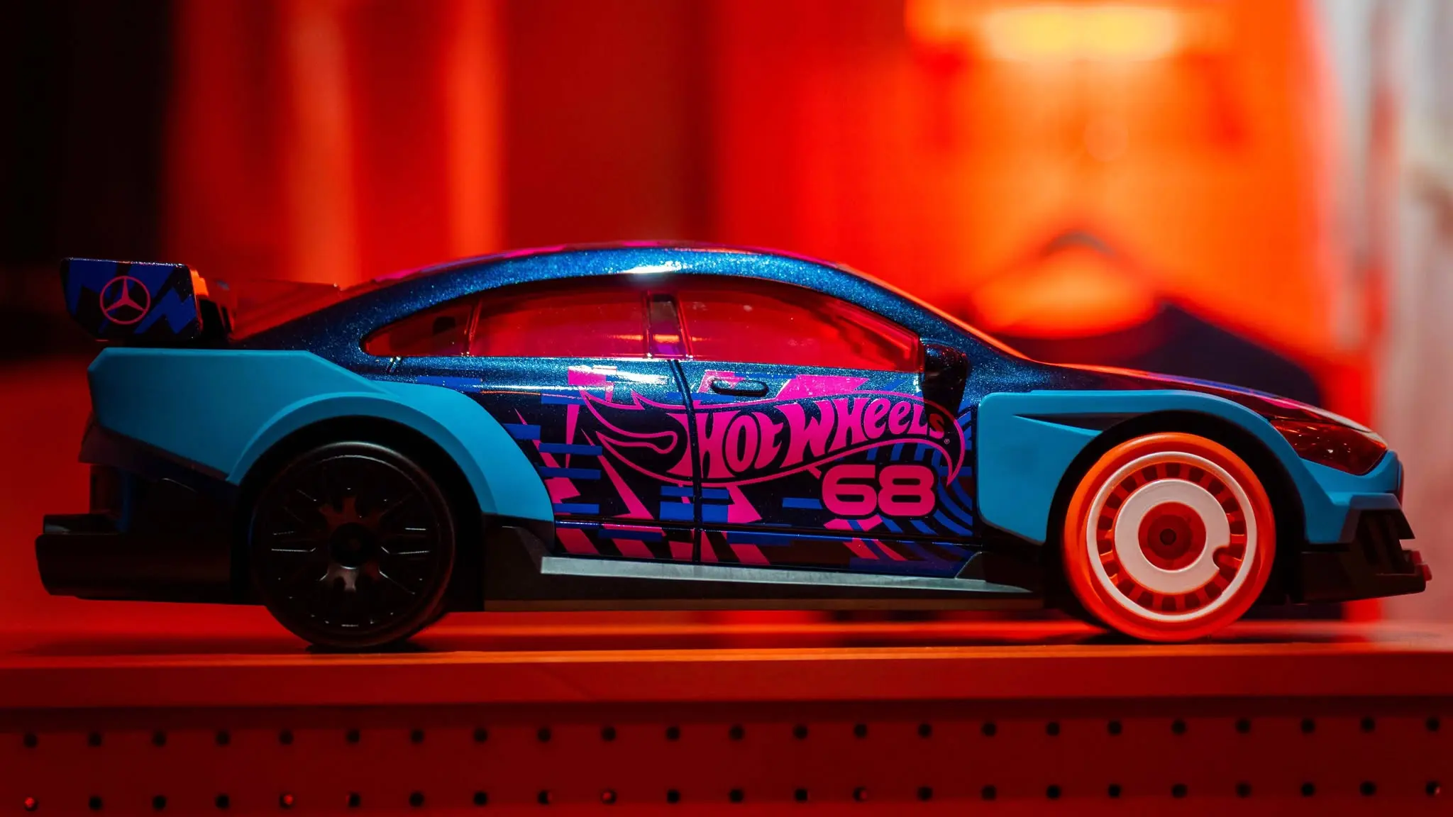 A játékgyártó autóihoz hasonlóan a CLA-t is szánt szándékkal túltolták, a Hot Wheels stílusában óriási kötényeket, diffúzort és szárnyat kapott a Mercedes, az üvegeket pedig rózsaszínűre fújták. A tervezők a kerekek kapcsán sem bírtak magukkal, elől és hátul teljesen eltérő a felni, így az eredeti méretű autó is egy játékra hasonlít. Természetesen 1:64 méretarányú apróságként is becsomagolják a Mercedest, várhatóan jövőre kerül a boltok polcaira a versenyautóra hajazó, megvadított CLA.
