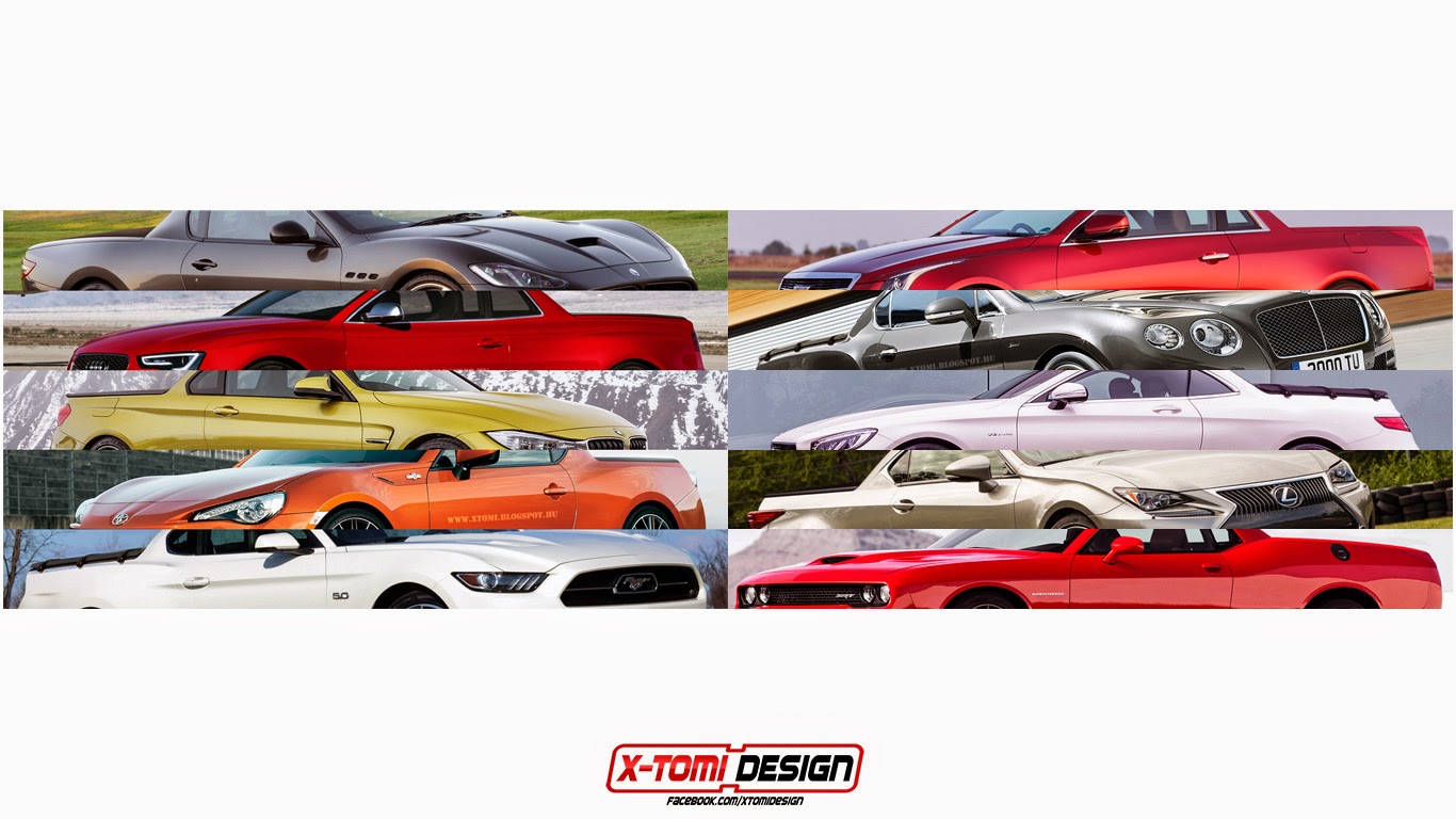 Egy Chevy El Camino, vagy egy felhúzott ős VW Caddy helyett a mai legmenőbb GT-k és sportkocsik platóval. Nem álom, X-Tomi megrajzolta.