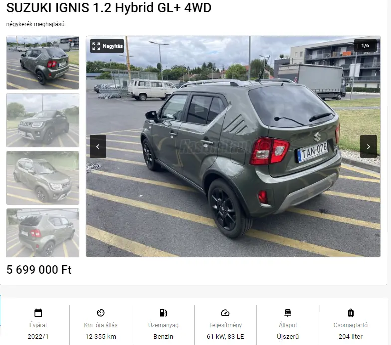 Jelenleg nincs elég Ignis a használtautó-piacon ahhoz, hogy messzemenő következtetéseket vonhassunk le: egyetlen, kissé túlárazottnak tűnő példányt találtunk, ami megfelel a keresési feltételeknek. Az összkerékhajtást és a magasabb felszereltségi szintet figyelembe véve még így is az újkori ára alatt kínálják eladásra az aprócska crossovert, ráadásul jelenlegi viszonyítási alapunk sincs, hiszen már nem forgalmazza a Suzuki a típust. Természetesen megeshet, hogy beesik majd egy vevő, aki kimondottan ilyet szeretne, ebben az esetben pedig még jót is tehet a fiatal használtak értékének, hogyha nincsen új alternatíva.
