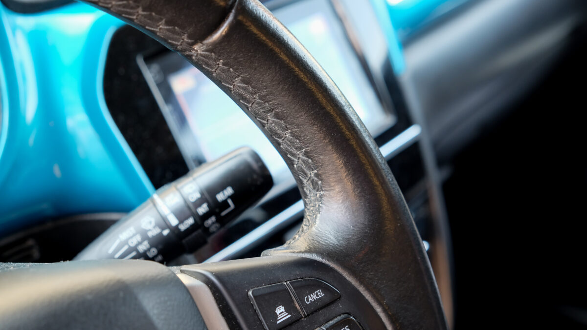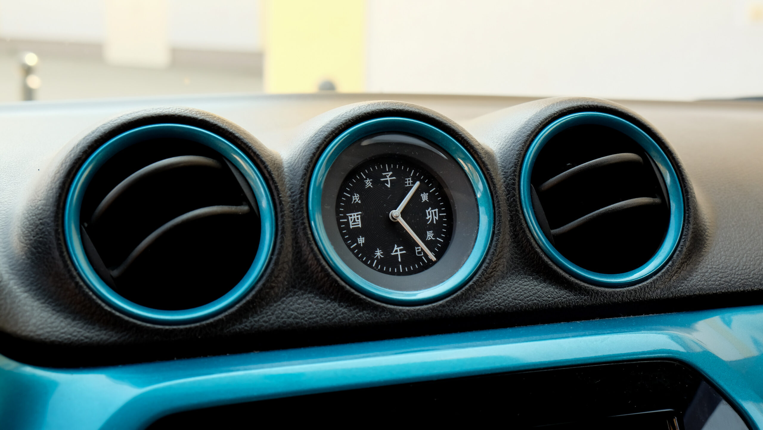 A türkiz fólia a különleges középső órához hasonlóan a gyári kiegészítők sorából került az autóba, az első ülések huzata utólagos, a gyári viszont újszerű állapotú, ahogyan a beltér egésze hibátlan