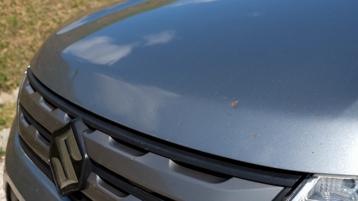 A még nagyobb döbbenet, hogy ez a Vitara bár elképesztően sokat futott, ez nemigen látszik rajta, talán az első lökhárító és főként a gépháztető meglehetősen sok, néhol komoly kőfelverődésén. Miklós erre meg is jegyzi, hogy érdemes lett volna nemhogy fóliázni, az Egyesült Államokban bevett vastag védelemmel ellátni a gépháztető első részét. Kavicsot az A-oszlopok és a szélvédő is kaptak, utóbbi már logikusan nem a gyári.