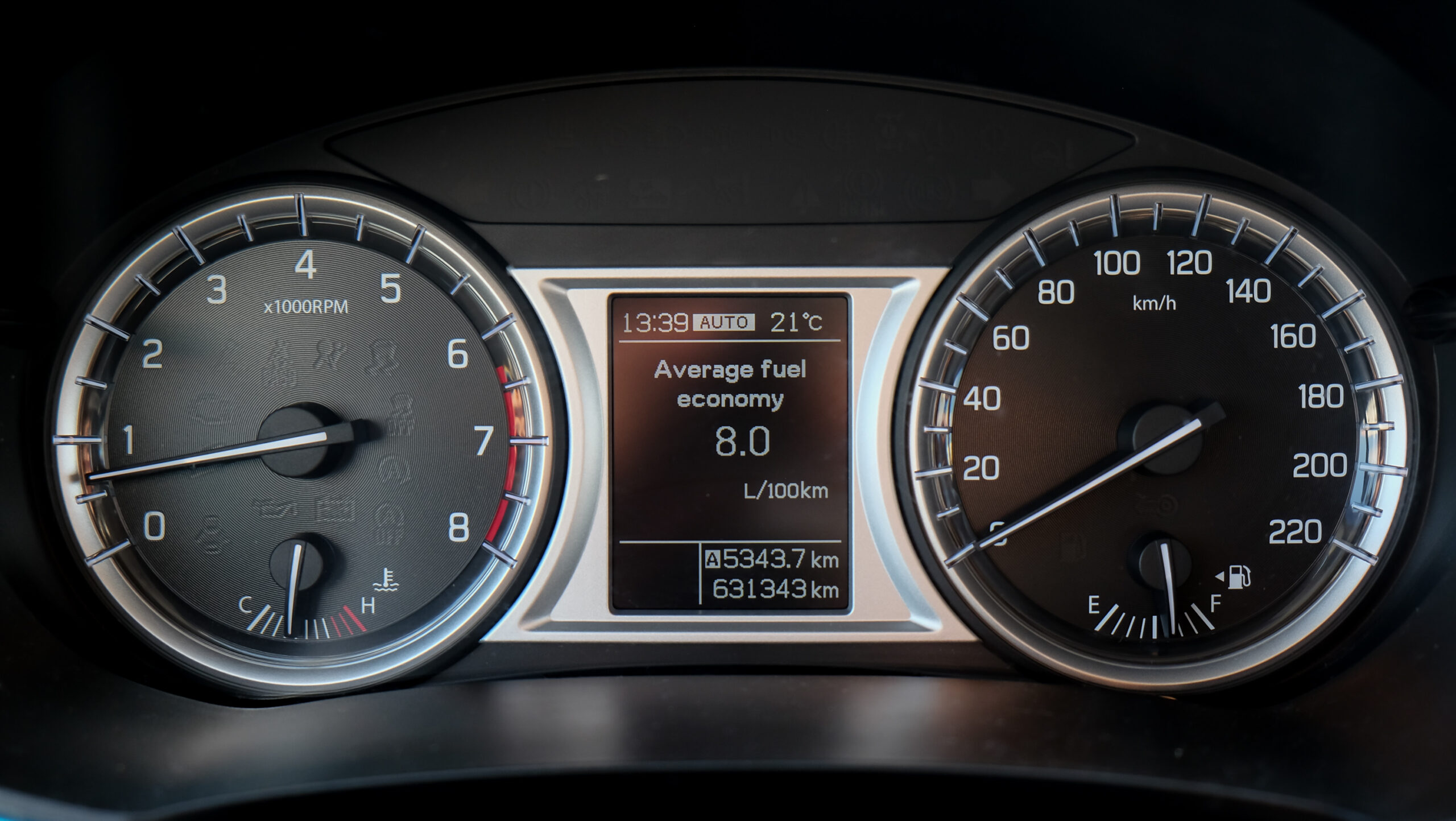 A nagy átlag ennél kedvezőbb, de volt már 4,5 literes átlag is két tankolás között, a valós 631 ezer kilométeres futásban sok-sok kaland, de főként munka volt. A napi számláló a fotózás előtt másfél héttel megejtett legutóbbi olajcsere óta megtett kilométereket mutatja