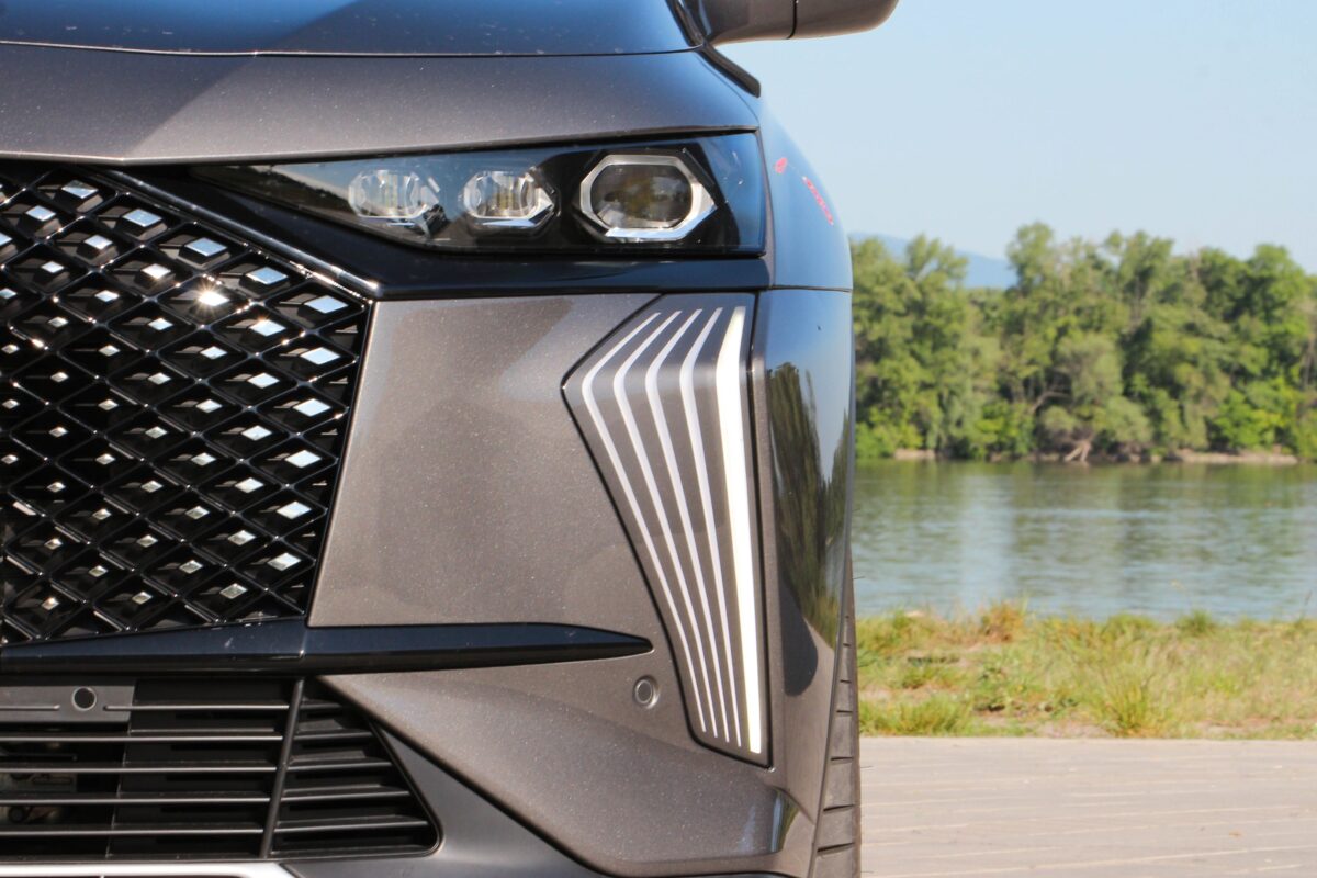 Elöl a fényszórókat leegyszerűsítették, a forgókristályos megoldást száműzték, ellenben a nappali menetfények sokkal hangsúlyosabb kialakítást kaptak, egyedibb karakterisztikát adva az autónak. Na, nem mintha a hűtőmaszk nem látná el ezt a feladatot, amely még nőtt is egy keveset a ráncfelvarrással, a rombusz mintázatú területet pedig a DS logó teszi teljessé. A márkajelzés alatt egy kamerát is elbújtattak, ami némiképp rombolja az összképet, de a szépség oltárán nem bűn áldozni a biztonságért cserébe.