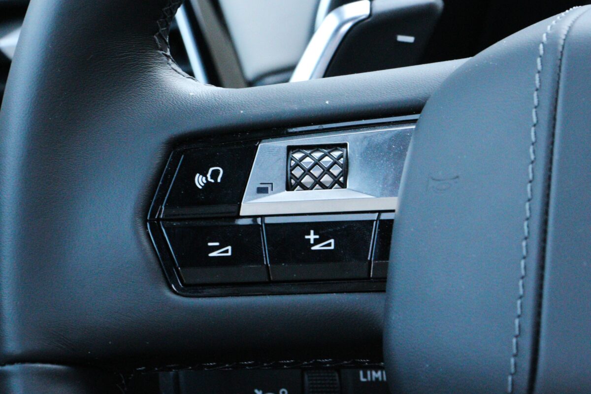 A kormányon fizikai gombok segítik a sofőr dolgát, két tekerővel, amelyekkel a menüpontok között lehet navigálni