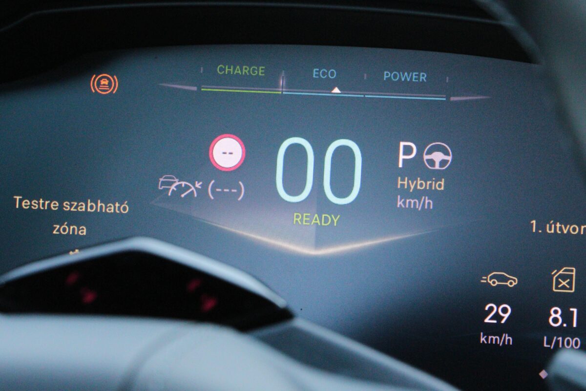 A digitális műszeregység megjelenése remekül átgondolt, nincsenek rajta felesleges információk, sőt, még egyszerűsített mód is választható, amely kis túlzással csak a sebességet és az adott üzemmódot jeleníti meg
