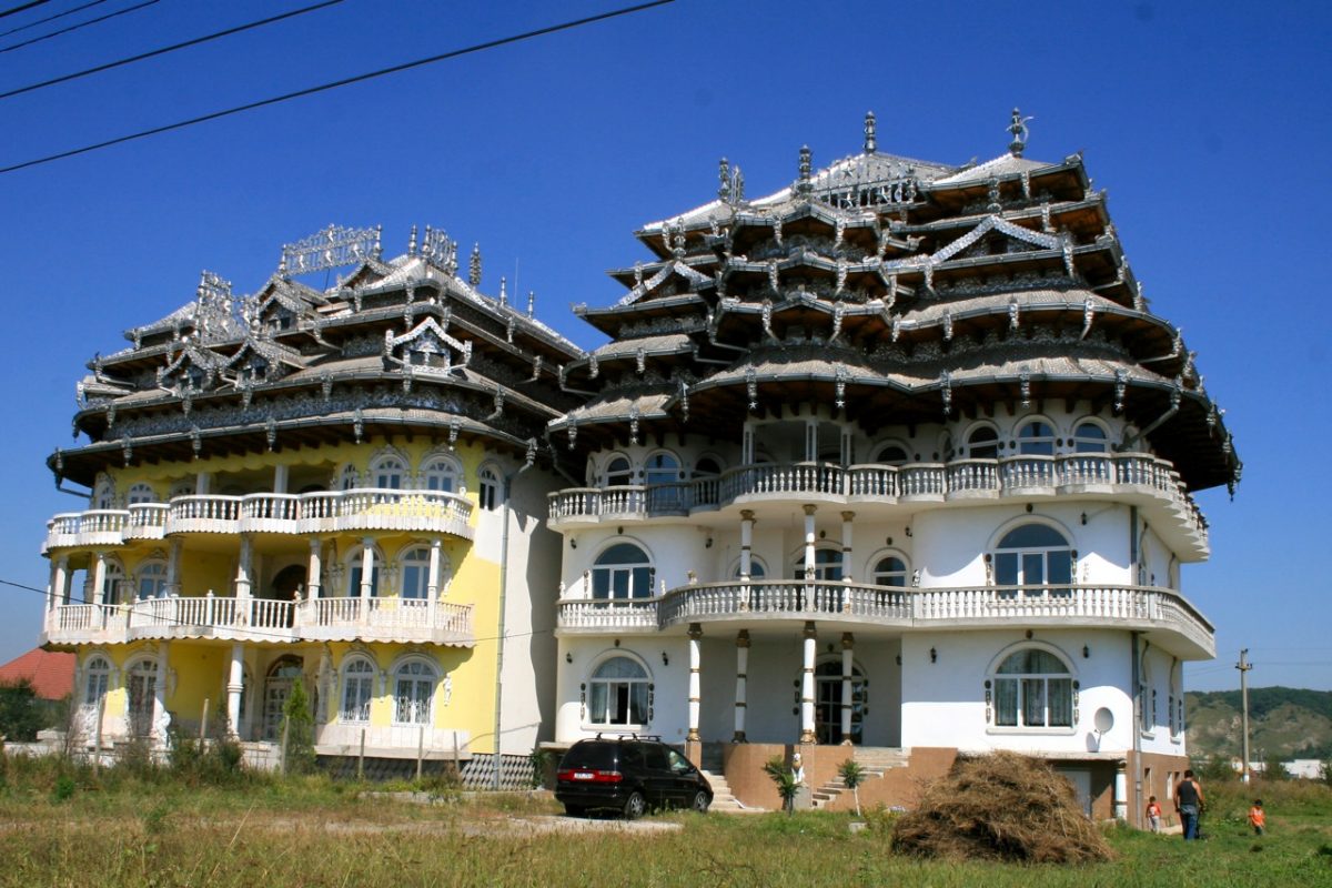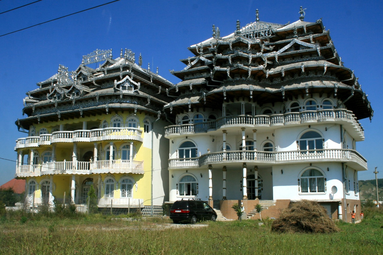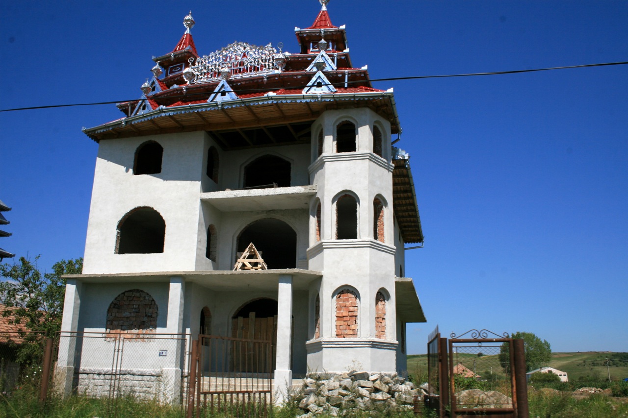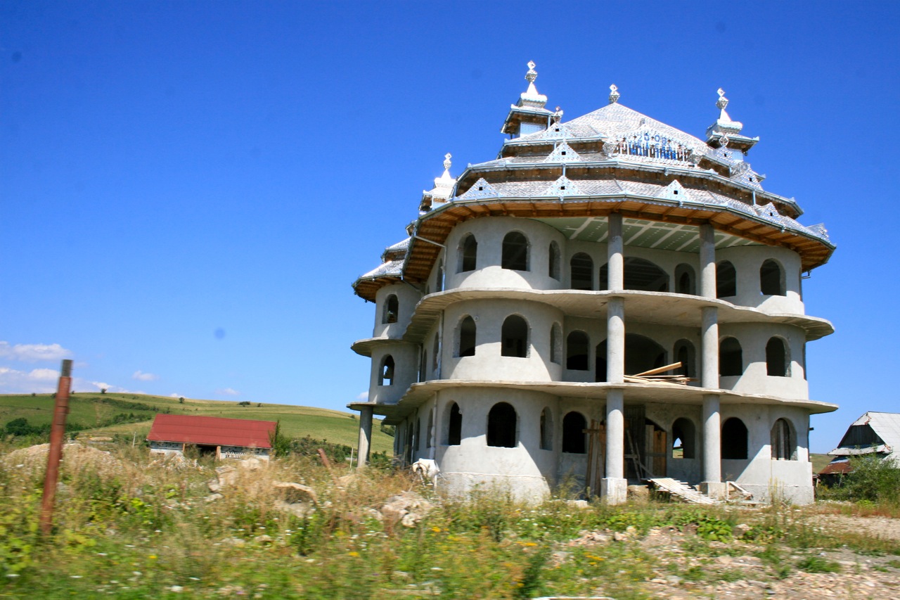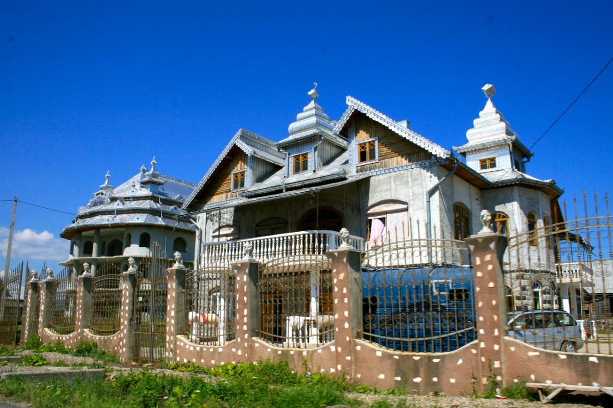 Bánffyhunyadon harminc-harmincöt darab ilyen, emeletes bádogpalota magasodik a város több száz éves nevezetességei fölé, egymással versengve. Csak egy fél emelettel legyen nagyobb, csak egy kicsit legyen díszesebb… persze az már egyedi, hogy melyik család hogyan szimbolizálja a gazdagságot. Ezek a szimbólumok persze jóformán semmit sem érnek, Kalotaszeg fővárosában ugyanis a legtöbb palota lakatlan, építtetőik az alsó szinten vagy egy szomszédos, jóval kisebb házban élnek. Az építmények többnyire valóban „csupán” státuszszimbólumot jelentenek főként roma származású és így hogy is mondjam szépen, e népcsoport hagyományait a modern építészettel igen feltűnő módon ötvöző tulajdonosok számára – akik kedvéért a közeli bazárban még közel életnagyságú műkő elefántot is árulnak, átszámítva saccperkábé ötszázezer forintért.