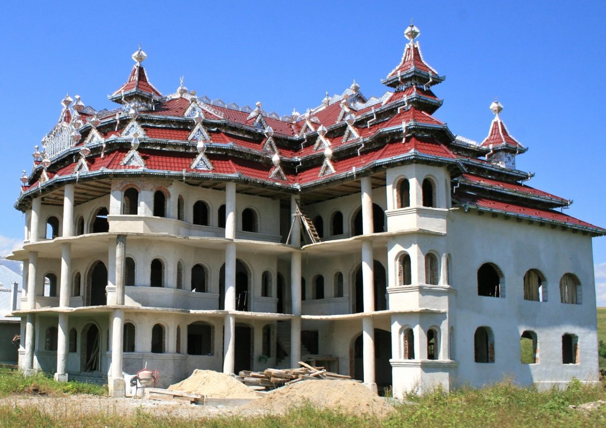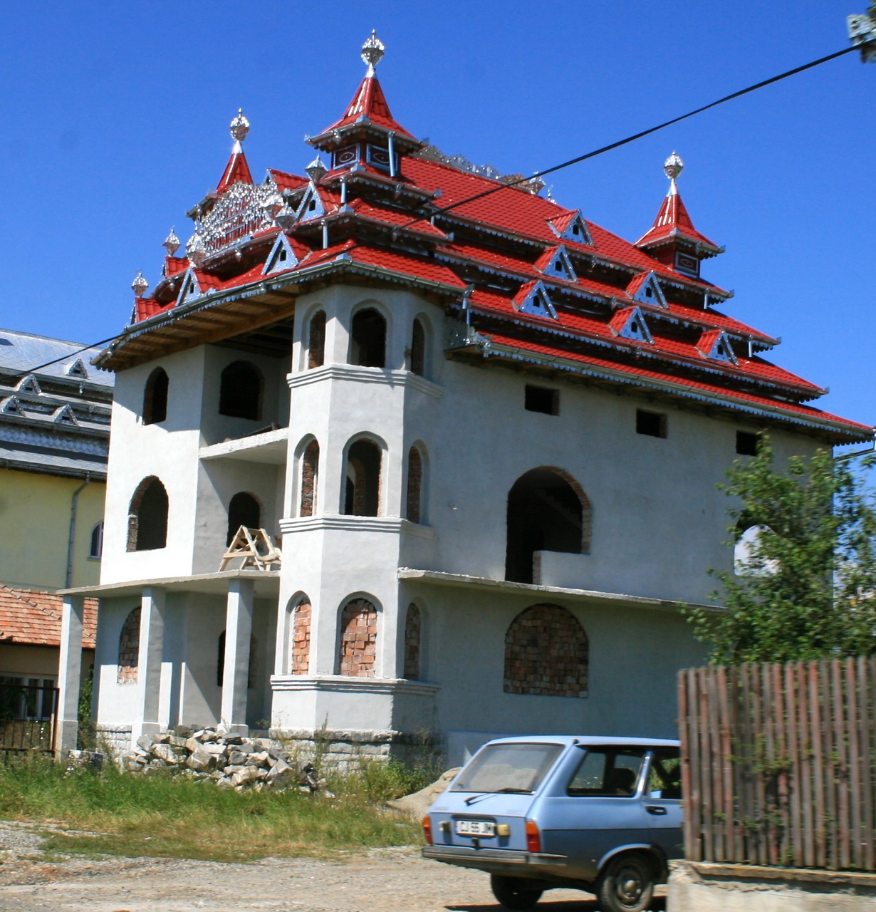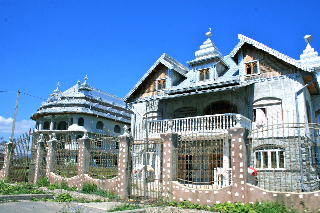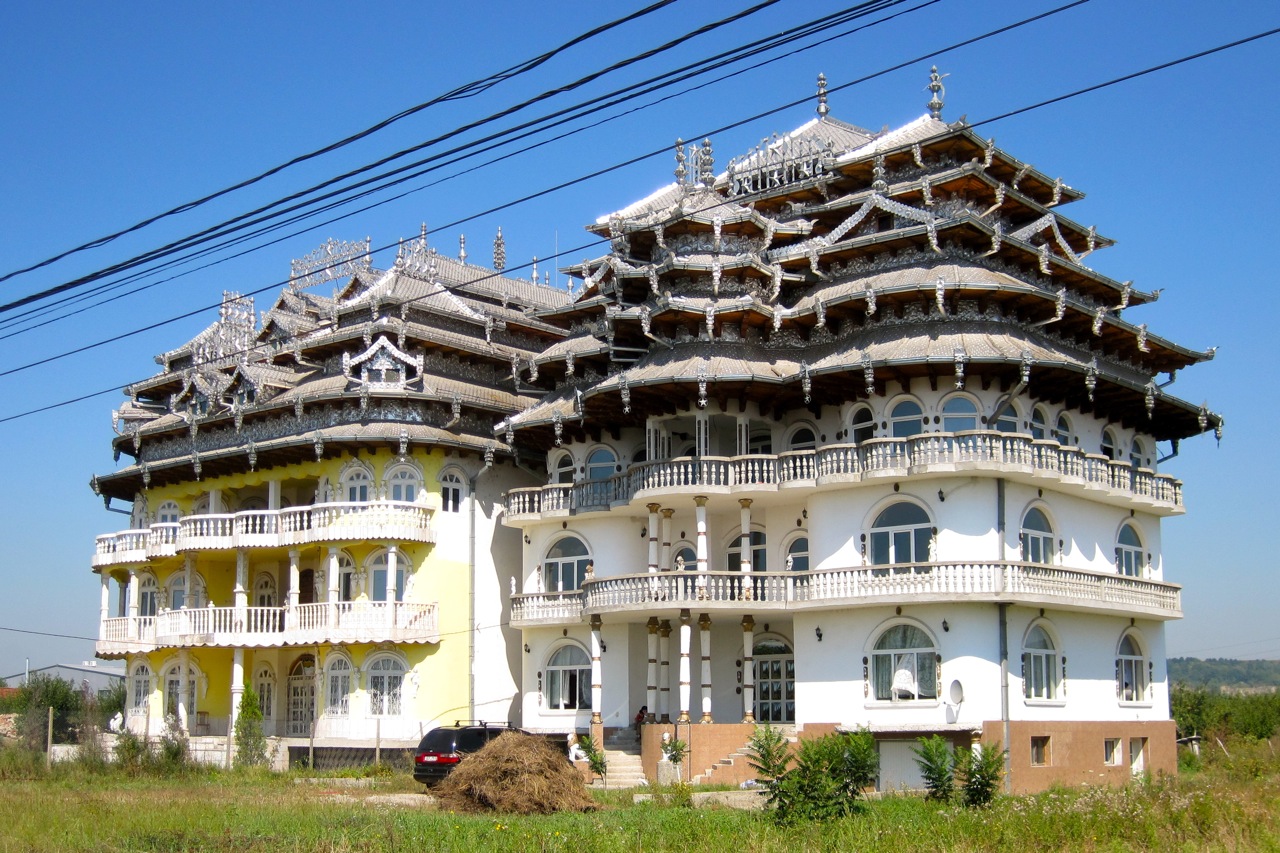 Bánffyhunyadon harminc-harmincöt darab ilyen, emeletes bádogpalota magasodik a város több száz éves nevezetességei fölé, egymással versengve. Csak egy fél emelettel legyen nagyobb, csak egy kicsit legyen díszesebb… persze az már egyedi, hogy melyik család hogyan szimbolizálja a gazdagságot. Ezek a szimbólumok persze jóformán semmit sem érnek, Kalotaszeg fővárosában ugyanis a legtöbb palota lakatlan, építtetőik az alsó szinten vagy egy szomszédos, jóval kisebb házban élnek. Az építmények többnyire valóban „csupán” státuszszimbólumot jelentenek főként roma származású és így hogy is mondjam szépen, e népcsoport hagyományait a modern építészettel igen feltűnő módon ötvöző tulajdonosok számára – akik kedvéért a közeli bazárban még közel életnagyságú műkő elefántot is árulnak, átszámítva saccperkábé ötszázezer forintért.