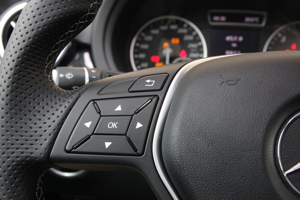 Arc az utastérben is van, még márkaidentitás is vastagon, a sofőr ugyanolyan kormányt markolhat, mint akár a CLS-ben, s a formák is vannak olyan kecsesek. A kerek, kissé ufószerű, de jól irányítható, tekeréssel zárható légbeömlők még frappánsabbak, mint az ott alkalmazottak. A középkonzol tetejére tett, digitális képkeretnek tűnő központi kijelző azonban érthetetlen elem, nem illeszkedik szervesen a műszerfal képéhez, ugyanakkor nem is behajtható vagy kiemelhető, hogy mondjuk GPS-ként vihessük magunkkal. Navigáció gombot kapcsolhatunk a Comand Controller körkapcsolóval, de ha nincs megrendelve a szolgáltatás, az csak egy vak menüpont, esetünkben is így volt. A központi menürendszerből alapáron elérhető azonban a ráfutásos balesetre figyelmeztetés. Érthetetlen, hogy a radaros rendszerhez miért nem társítottak tempomatot is, hogy a „Főnök, fékezni kellene!” jelzés helyett az autó maga is megtehesse azt – a távolságtartós tempomat persze elérhető, felára hajszálnyit 330 ezer forint alatti. Van továbbá éberségre figyelő Attention Assist is - mely a menüben - a Mercedes írásmódjától eltérően - i helyett y-nal szerepelt - komoly probléma, s vélhetően egy szoftverfrissítés meg is oldja majd.