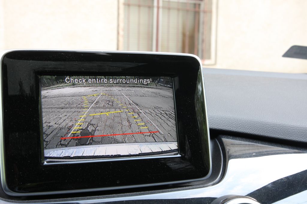 Digitális képkeretnek hat a középkonzol tetejére tett, opcióként tolatókamerás, azzal kormányállással változó segédvonalakat is rajzoló kijelző. Zavaró, hogy kikapcsolt audiorendszerrel nincs kamera és kihangosító