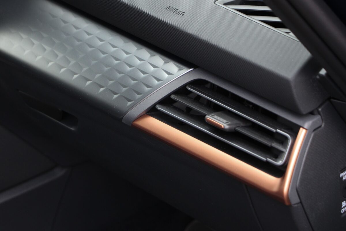Nagyon kíváncsi lennék, ki mit válaszolna az előbbi kérdésre, de lehet, hogy sokan nem egy Volkswagen ID. 3-at. Viszont a Cupra keze meg volt kötve, hát kihozták, amit csak lehetett a lehetőségekből. És a Born bizony ütős lett a maga módján. Sportautónak távolról sem nevezném, de egy divatdiktátornak már igen. Egyértelműen a formájával akar lenyűgözni, ami eléggé láptalaj, hiszen ízlések és pofonok különbözőek ugyebár, ám ügyesen ugrották meg a lécet. Az ID. 3-ság valójában csak oldalról fedezhető fel (amíg be nem ülünk). Teljesen átszabták az autó orrát és farát. Merész arcot rajzoltak neki, látványos légbeömlőkkel a lökhárítóban, de másfelé is tökéletesen alkalmazták a sportosságot hangsúlyozó stíluselemeket. A motorháztető domborítása, hátul a diffúzorhatású elem, de még a C-oszlopon a fekete díszbetét is segít sportosra hangolni a Born auráját. Emellé ott vannak még a rézszínű betétek, az eleve menő Cupra emblémák és az elképesztően látványos Aurora kék karosszéria (373 800 forintért), valamint az elképesztően látványos, 19 colos felnik (410 210 forintért), így kész is a valóban magával ragadó dizájn.