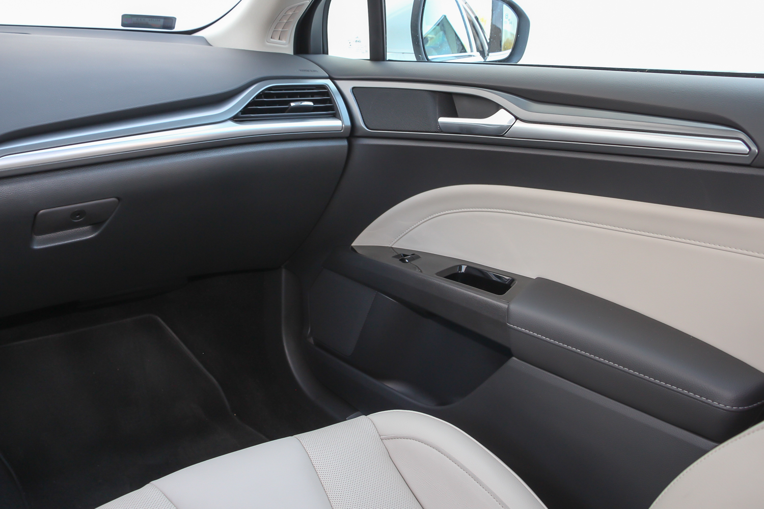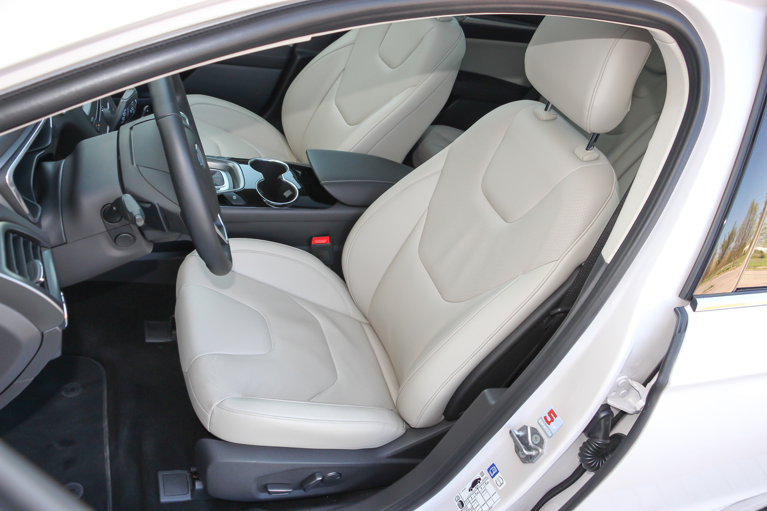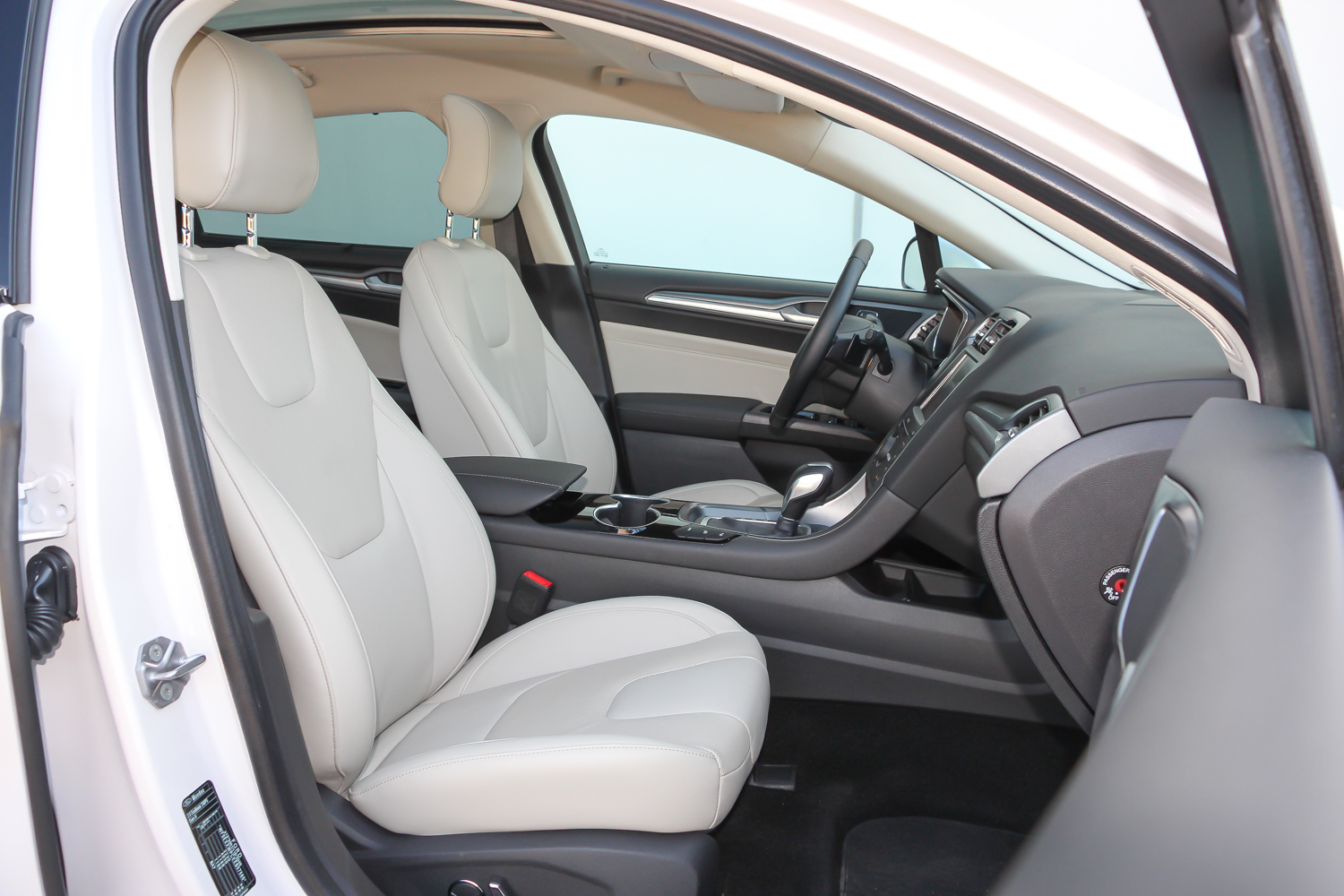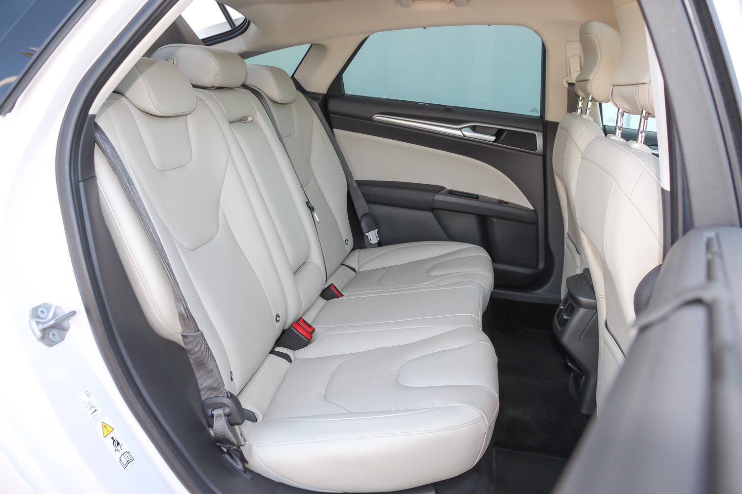 Ha jól ülök, akkor már szinte minden oké. Lendüljünk túl a külsőn annyival, hogy mindenki döntse el magának, tetszik vagy sem az új Mondeo. Azt is, hogy szép-e önmagában, meg hogy melyik kategóriatársánál (Opel Insignia, Volkswagen Passat, Peugeot 508, Skoda Superb) tetszik jobban. Merüljünk el a belső térben, amiről előre annyit mondanék, hogy mivel a tesztautó a legerősebb benzines, így hozzá eleve már a Titanium szint a belépő. Ebből adódóan összetettebb, személyre szabható műszerfalat és nagyképernyős érintőkijelzőt kaptunk hozzá. A feláras bőrülések elektromosan állíthatóak és a csodaszép, otthonos árnyalatú Medium Soft Ceramic színű kárpit feszül rajtuk. Ha valamit, akkor az ülést nem érheti kritika, ez már majdnem a Volvók kényelme. Nyilván nem véletlenül, hiszen a svédek pár éve még a Ford fennhatósága alatt "tervezték az ergonómiát". Furcsa, de adott esetben kompaktoknak is hosszabb az ülőlapja, például a legutóbbi Focus tesztautóban is 52 centi volt az első laphossz. Mégis a Mondeo székei nagyautós jellegükkel viszik a pálmát. A beltérben még a lyukas, lebegő középkonzol is volvós emlék, de a vezető melletti karfa gombjai sajnos nem lettek tökéletesek. Nagyon elöl vannak a pici kapcsolók, én háromszor is behajtottam menet közben a külső tükröket, pedig csak az ablakot szerettem volna felhúzni.
