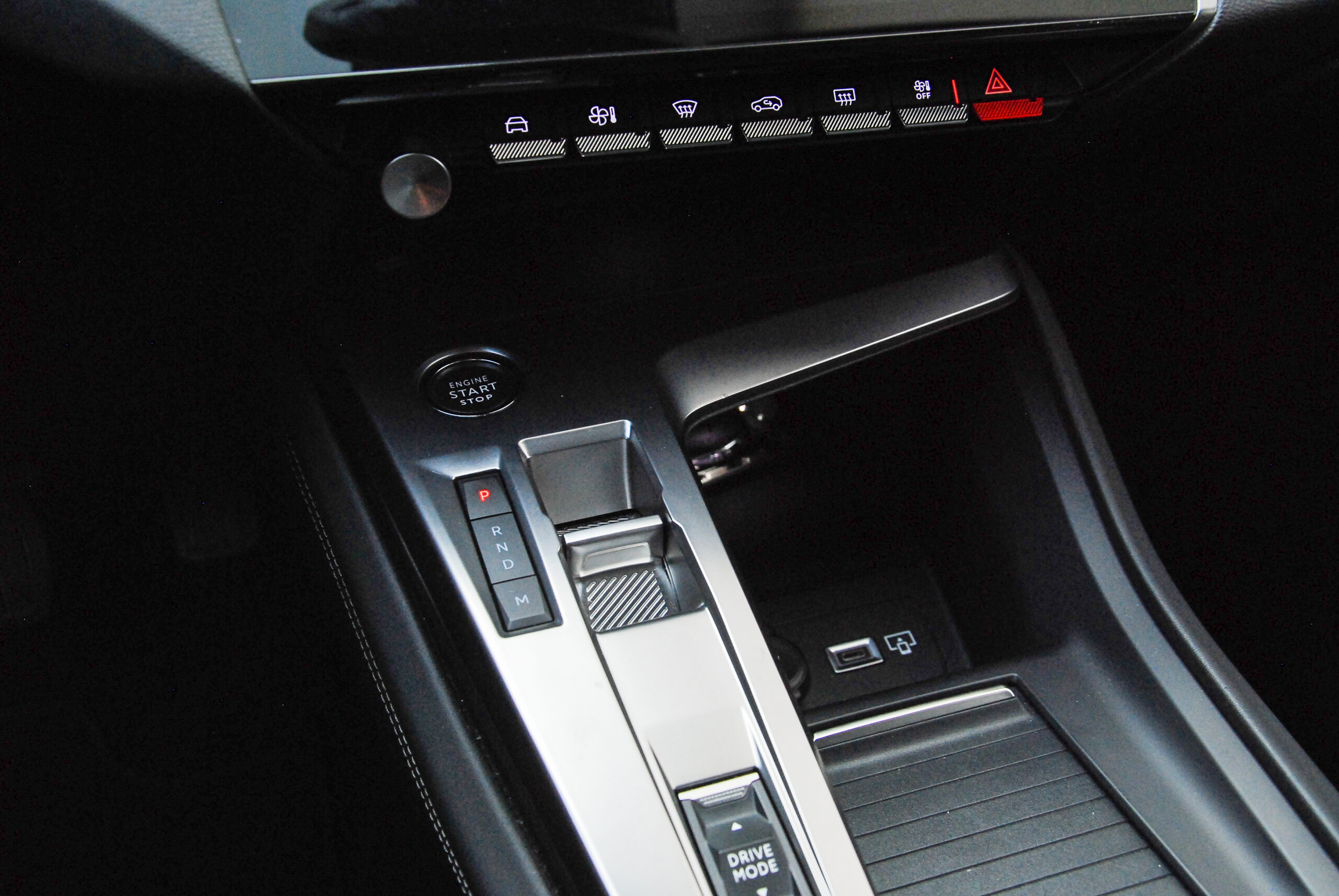 A központi érintőképernyő alatt az alapfelszereltség kivételével minden szinten egy második érintőképernyőt találunk, amelyen testre szabható gyorsgombokkal segíthetjük a manőverezést a rendszerben, alatta pedig fizikai gombok irányítanak a mindenki számára fontos menüpontokhoz, mint például a klímavezérlőhöz. Ezen a téren persze még jobb lett volna egy valódi gombokkal vezérelhető szellőztetőrendszer, de így is előrébb vagyunk, mintha külön keresni kellene a tapogatható csempék közt vezetés közben. Alatta vezeték nélküli telefontöltőt és egy egyszerű irányválasztót találunk a középkonzolon, ami ügyesen olvaszt bele a dizájnba még néhány USB csatlakozót, pohártartót és egy hatalmas tárolórekesszel rendelkező könyöklőt.