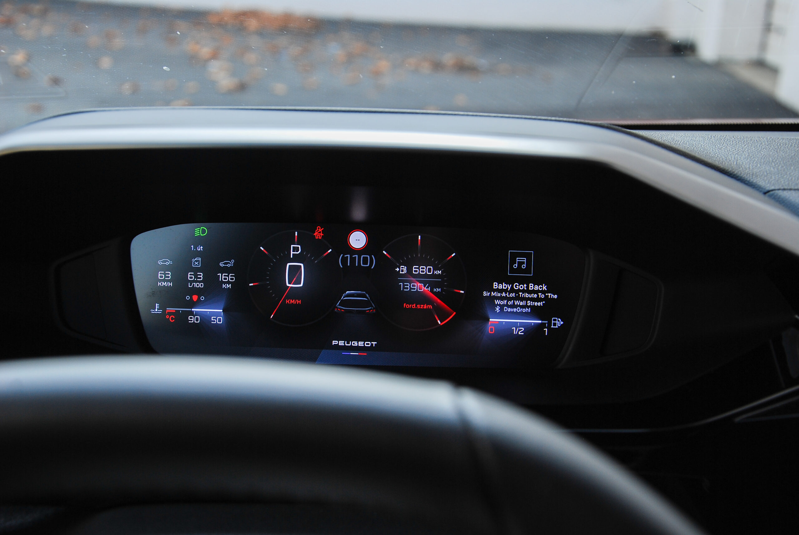 A műszerfalat már ismerjük az utóbbi évek Peugeot modelljeiből. Az i-Cockpit elrendezéssel a francia mérnökök lényegében újra felfedezték a kereket, és szerintem bejött az ötletük. A digitális műszeregység ezerszer jobb helyre került a kormány felett, az üléspozíció elsőre szokatlan, ám garantálja, hogy szabályosan, közel derékszögű háttámlával állítsuk be az ülést, és ami a legfontosabb: gyorsan kényelmessé válik.