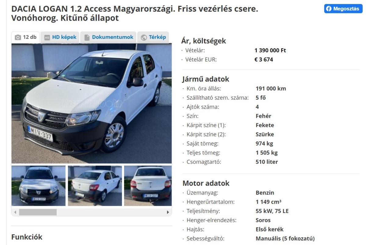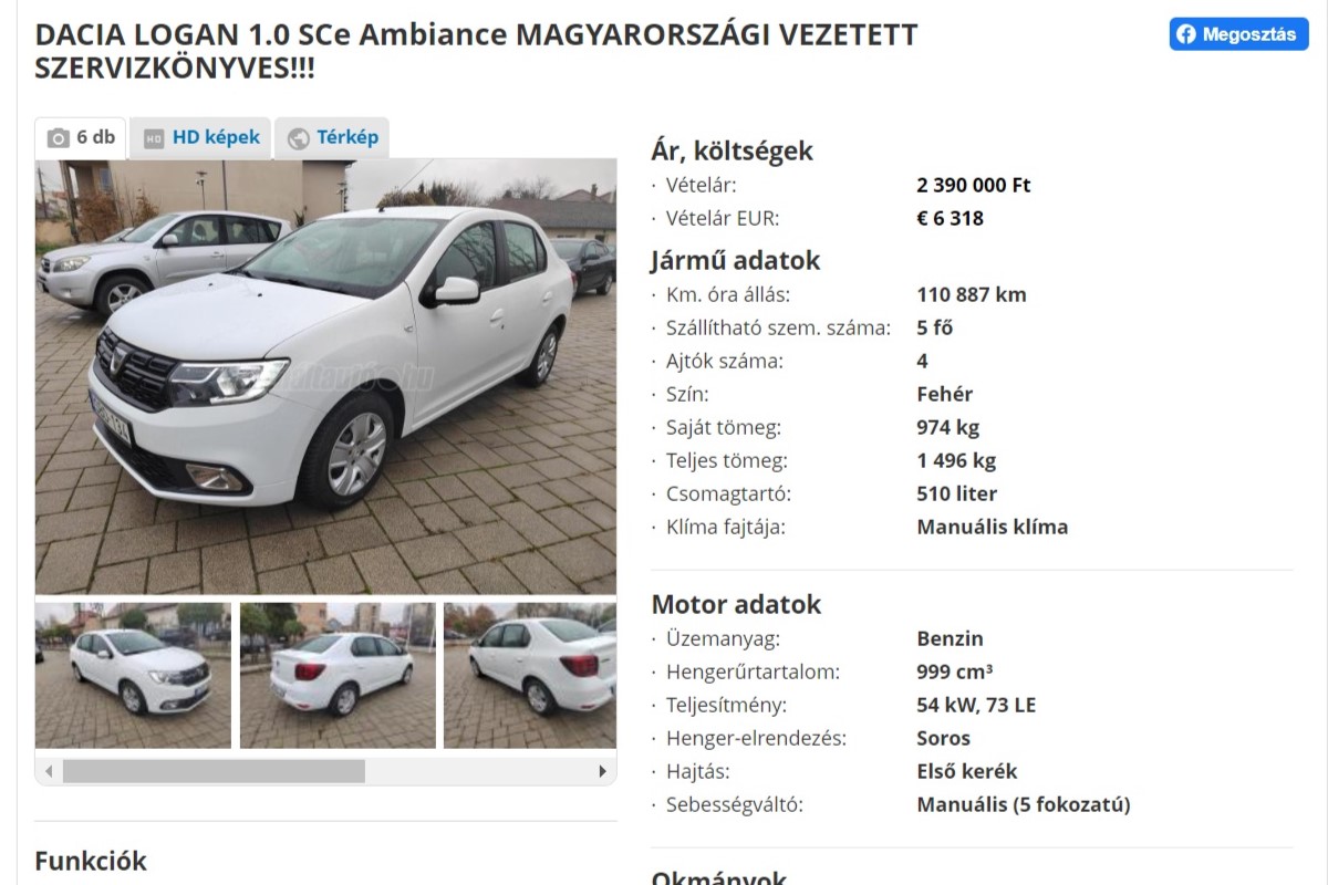 Magyar papírokkal sem lenne kimondottan olcsó ennyiért ez a Logan, hát még román rendszámmal (Fotó: Használtautó.hu)