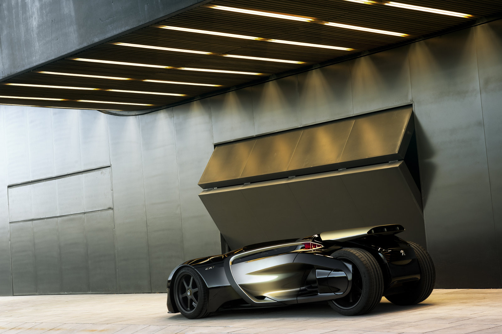 A Peugeot EX1 mozgatásához szükséges energiát lítium-ion akkumulátorok biztosítják, a meghajtásról két darab, egyenként 170 lóerő csúcsteljesítményű elektromotor gondoskodik. Ezek egy-egy tengelyt hajtanak, azaz összkerékhajtású az EX1 – ezek után nem csoda, hogy az alacsony tömege ellenére is képes több mint 1G-s gyorsulásra. A karbon utascellába bejutás olyan ajtókon keresztül történik, amelyek egyben a padló burkolatát is adják – nagyon meg kell nézni, hová tesszük a lábunkat. Ennél nagyobb kihívást jelent egyébként az autó vezetése, azt ugyanis nem a megszokott kormánykerék-pedálok interfésszel kell végrehajtani, hanem két botkormány segítségével.