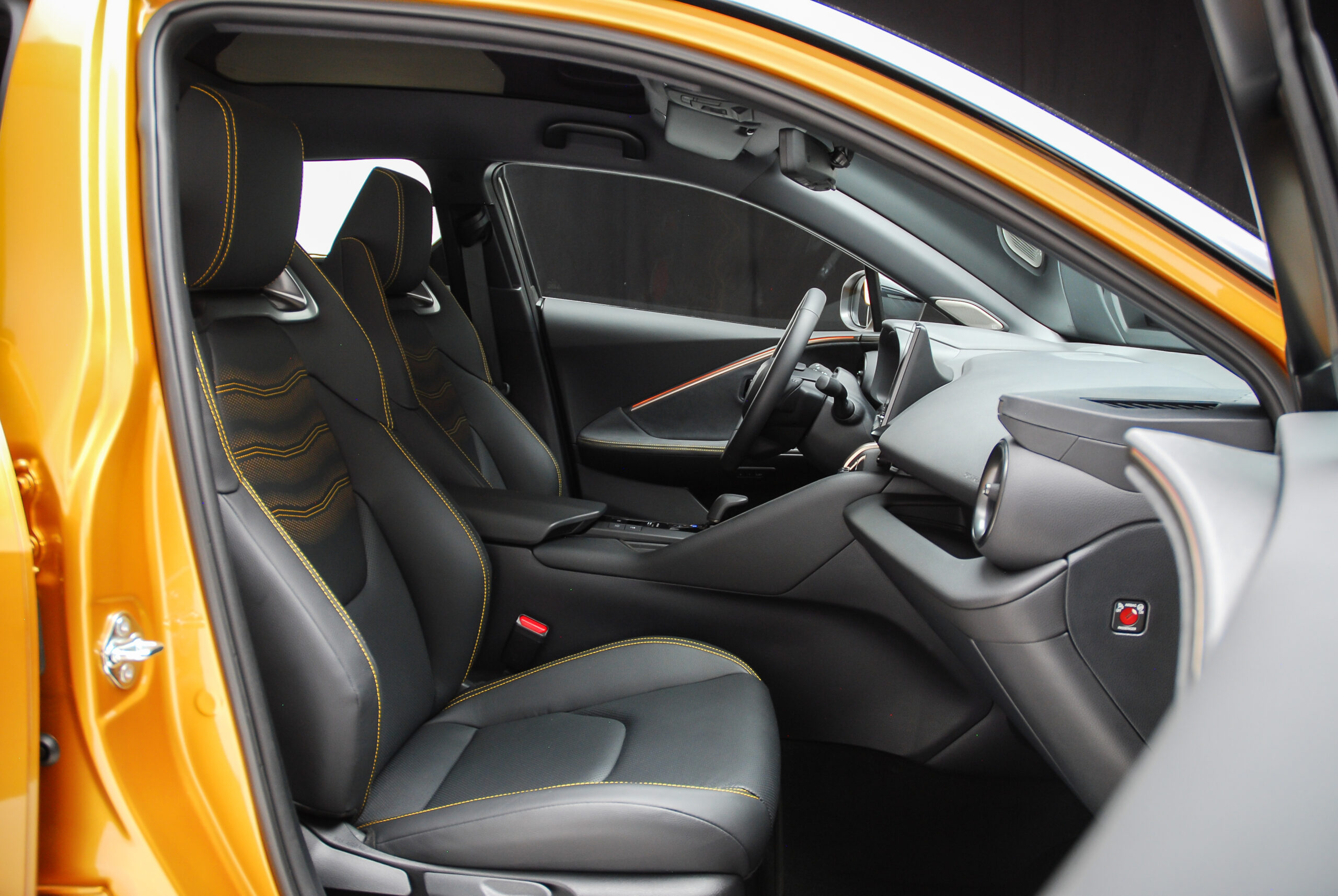 Ehhez rögtön hozzájárulnak az autó méretei: lényegében a legnépszerűbb, Corolla méreteket hozza egy ezerszer menőbb csomagolásban. Ráadásul az arányai is teljesen rendben vannak, bárhonnan nézed, tökéletes helyre húzzák a formák a szemeidet: amennyire lehetett, eltüntették a felületeket megtörő hézagokat, ha pedig mégsem lehetett egy nagy lemezből megoldani, akkor okosan rejtették el a felesleges határvonalakat. Az egyik ilyen trükk a kéttónusú fényezés, amely a modern Toyotáktól megszokott stílusából indul ki, ám vadabb, merészebb a korábbiaknál, és sokkal jobban összhangban áll a karosszéria éleivel, ezzel kiemelve azokat. Mindezt az akár 20 colos, kéttónusú könnyűfém-felnik fejelik meg némi extra ízzel.