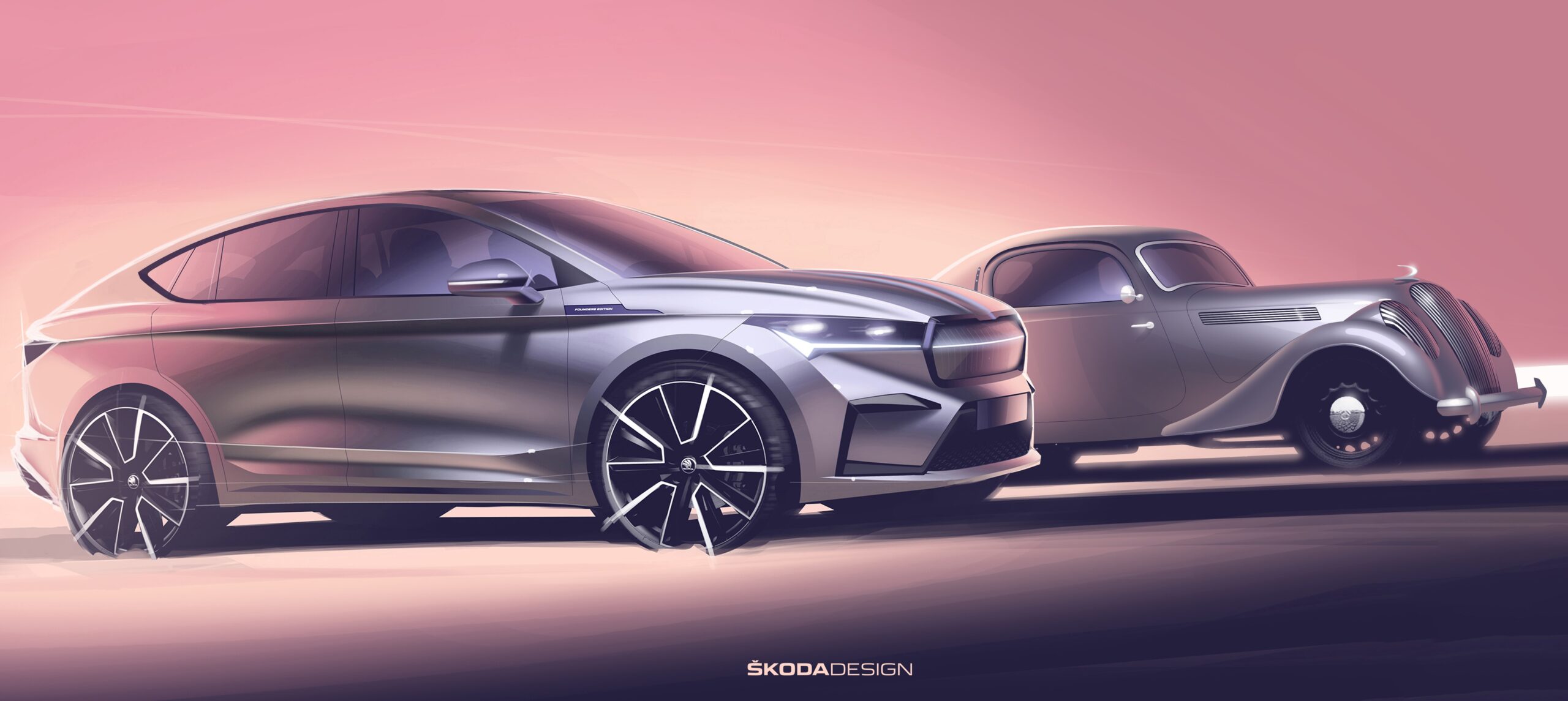 A gyártó hivatalos skiccei szerint valahogy így fog kinézni a Škoda Enyaq Coupé iV