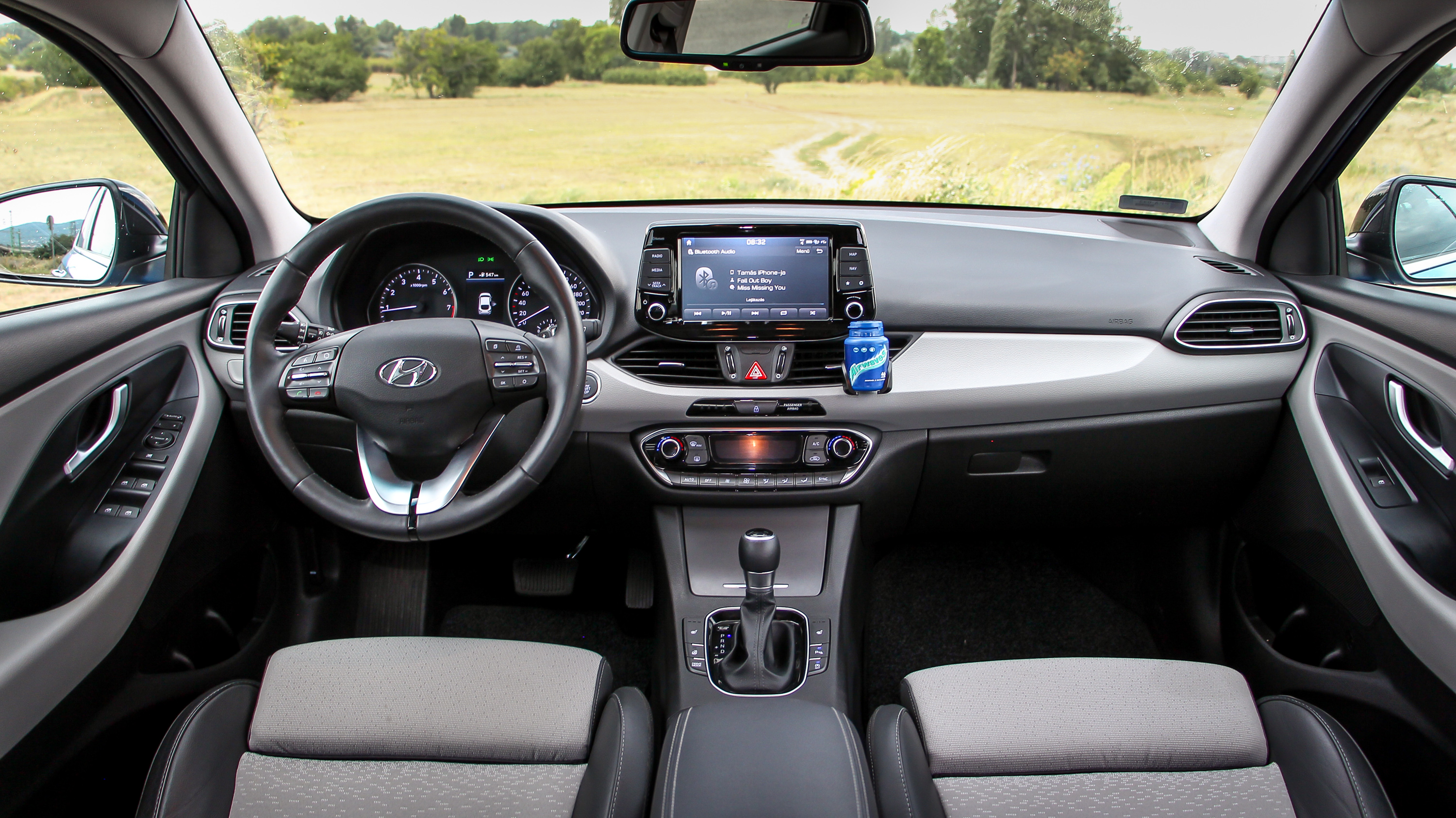 Hangyányit keményítettek a futóművén, amit érezni is, veszített egy keveset a komfortból, de kényelmetlennek azért így sem mondanám. Határozottan ott van az úton, egy-egy kanyart még élvezni is lehet vele, úthibákon azért nagyokat tud szólni. A kormányzás rendkívül szintetikus, visszajelzés egyáltalán nincs, cserébe jó fogású, az ergonómiával amúgy sincs probléma egy i30-ban. Németes a rend, elég logikus, átlátható és letisztult, a formák otthonosak, a vegyes szürke-fekete összeállítás pedig nagyon jól áll neki. A 8 colos érintőkijelzős fejegység gyors, ellenben kicsit sokat kell olvasgatni indulásnál, kezelése szokható, bár különös, hogy csak a telefon menüpont nem kapott dedikált külső gombot, azt a „Minden menü” pont alatt találjuk meg. A műszerek egyszerűek, nem néznek ki rosszul, csak este ne akarjuk éévezni a látványt, mert az erős kék fénnyel világító ledes piktogramoktól kiég a szemünk.