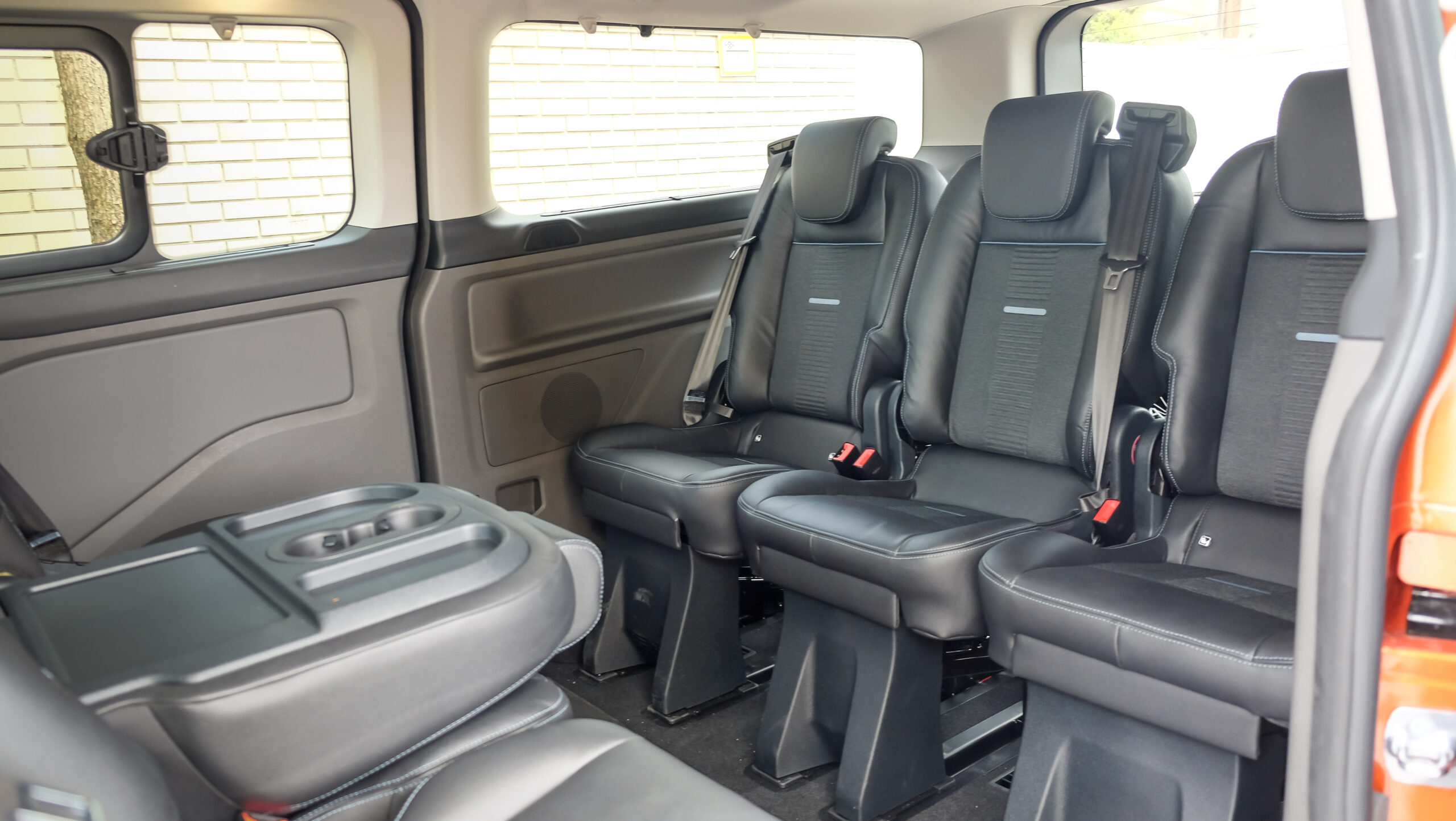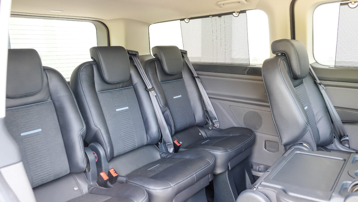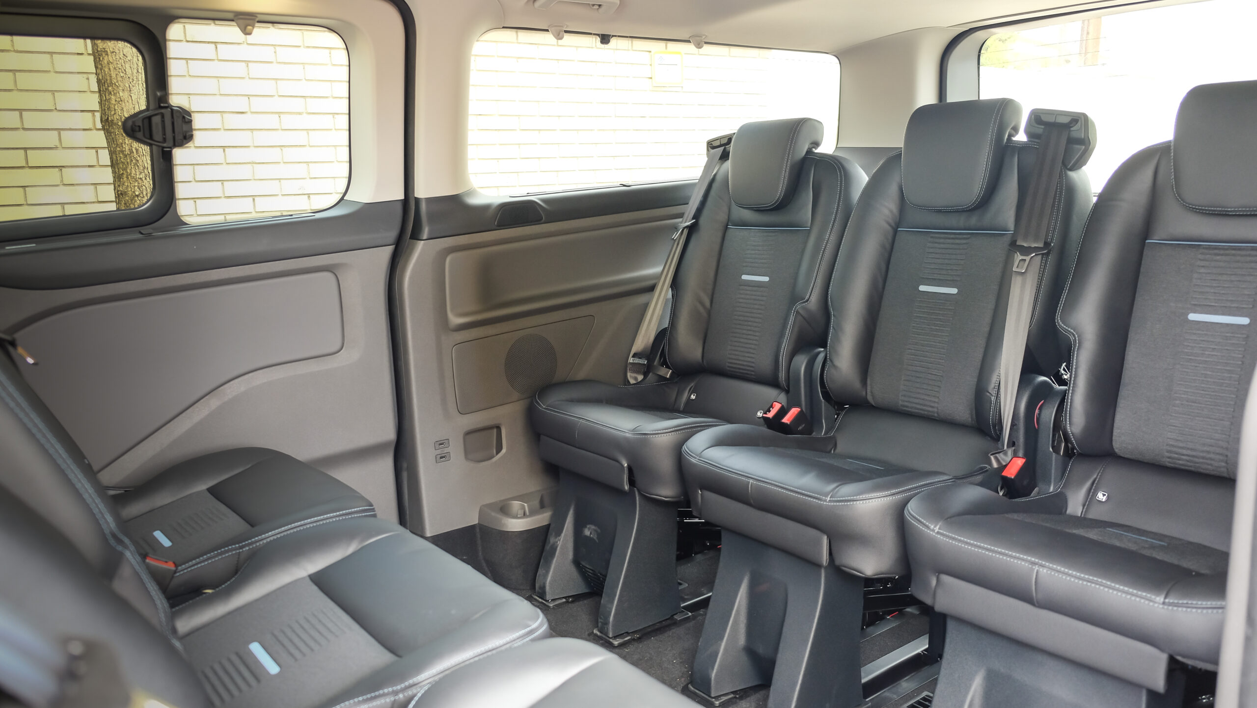 A több mint 10 négyzetméter alapterületű kisbusz - a cikk végén olvasható - nem szerény vételára a mai lakás-négyzetméterárak mellett nem is vészes. Elöl teljesen jó kényelmű, mindkét oldalt dönthető ülőlapú üléseket kapunk, a sofőré ráadásul elektromosan állítható itt, az Active szintnél. Köztük és tőlük hátrafelé is gond nélküli az átjárás, hiszen a váltókar nem a padlóból, hanem a műszerfalból nő ki. Hátul is kivétel nélkül függetlenek az ülések, bár méretük elmarad az elsőkétől. A szabályozható támladőlésű székekben hosszabb utak is komfortosan tudhatók le. A középső támla ledöntésével mindkét hátsó sorban asztalt, további pohártartókat kapunk. Az ülések egyenként kivehetők, a középső sor a leghátsóval szembe is fordítható. Az egy-egy ülés önmagában sem szerény tömegű, kétemberes feladat az ülésrend átrendezése, de megéri, hatalmas buli, a normál utazáshoz mérten jelentősen más élmény, ha a hátul ülők nem az előttük lévő támlákat, hanem egymást is látják, na persze a táj mellett, amire szintén átlag feletti kilátás nyílik a magas pozícióból.
