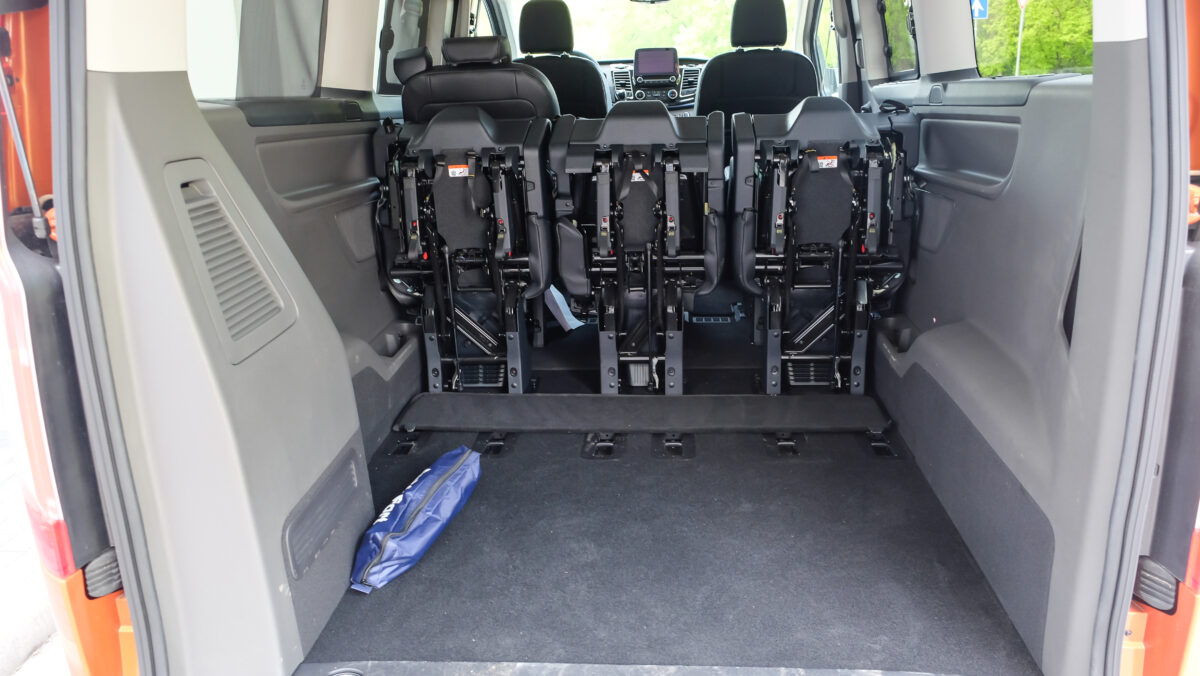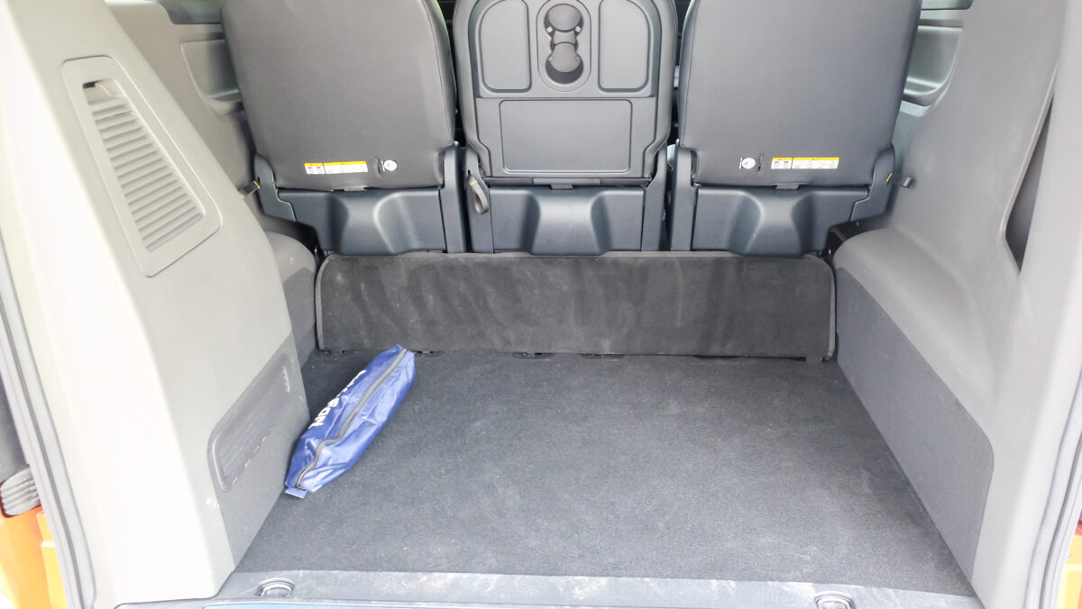 Mindhárom üléssor mögött is nagy, a plafonig 1,9 köbméteres a csomagtér, a hátsó ülések össze, majd előre is hajthatók, ki is emelhetők