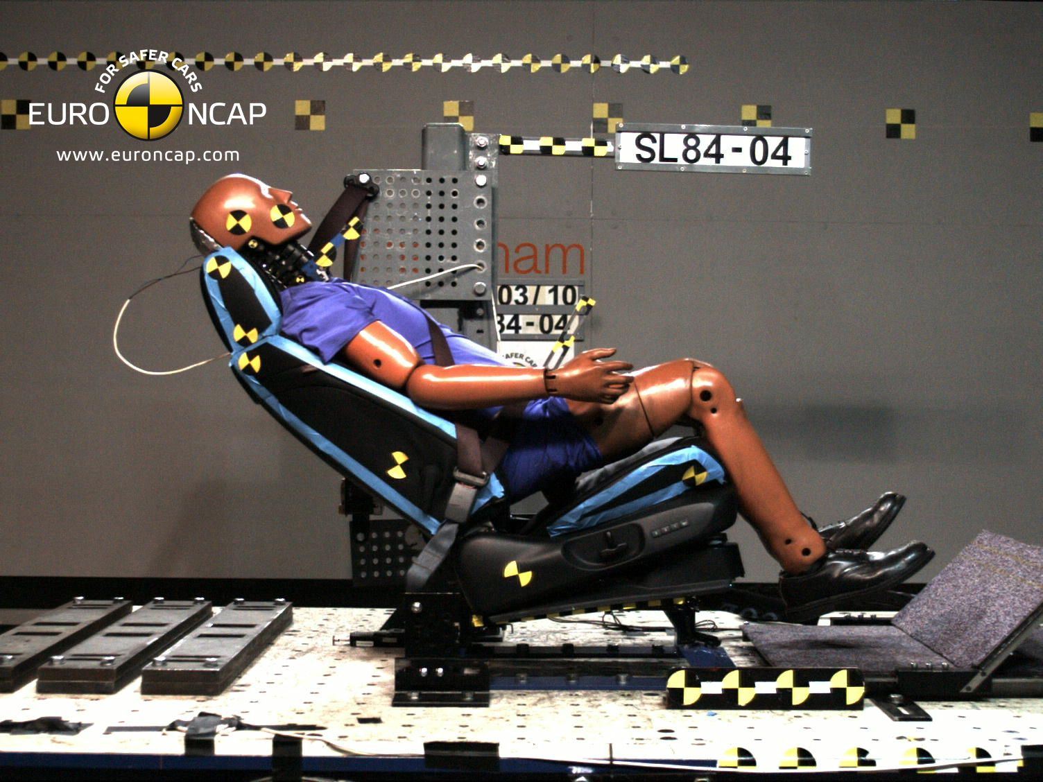 A Mazda CX-7 jól védi utasait, de ráfutásos baleset szimulálásakor a bábu feje a fejtámla fölé került, így súlyos nyaksérülést valószínűsítenek