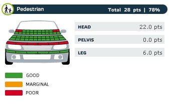 A BMW az Alfához hasonlóan ötcsillagos. Motorháztetején sok a zöld, tehát ott jól védi az elütött utast, de a piros él és a sarkak súlyos sérülést okozhatnak
