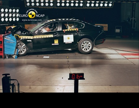 A nagy és masszív BMW 5-ös is kiválóan megvédi utasait, egyedül a has és a mellkas esetében mértek nagyobb behatást, ám az még mindig a határon belül marad. A jó gyermekvédelem mellett itt sem jelzik feltűnően a kikapcsolható utaslégzsák állapotát, de a bekapcsolva hagyott légzsák és az oda helyezett gyerekülés veszélyére megfelelő jelzések utalnak. A BMW teljesített legjobban a három autó közül az elütött gyalogos megvédésében: felemelkedő motorházteteje az elülső él kivételével jól csökkenti a sérülés veszélyét.