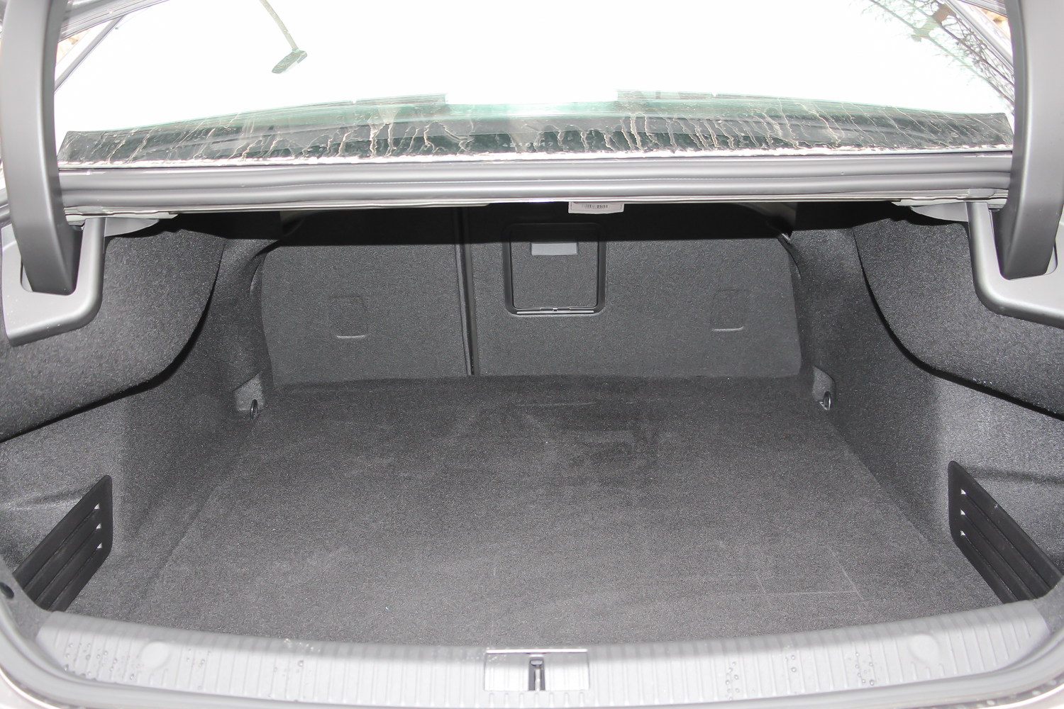 608 literes a csomagtér, de a szedánforma miatt nem a legjobban használható, igaz bővíthető. Németes részlet a kéderbe akasztható kampó, ami felemelve tartja az álpadlót