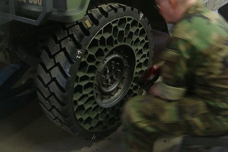 Michelin Tweel munka közben, és a Resilient Technologies méhsejt-szerkezete