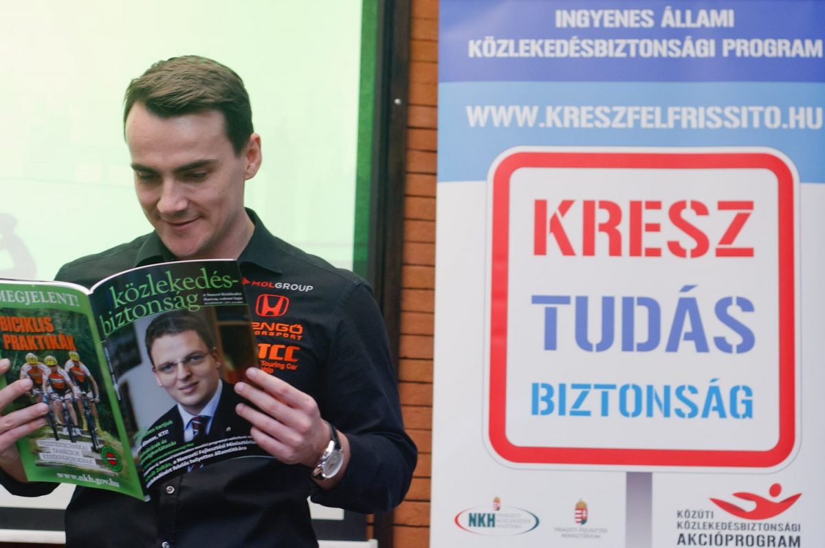 "Nem túl régóta van jogosítványom, de mióta közúton vezetek, változtak a magyarok közlekedési szokásai" – kezdte a túraautó-világbajnokságban szereplő Michelisz Norbert. "Ahogy tapasztalom, egyre kulturáltabbak vagyunk a forgalomban. Pécsett és Budapesten, illetve a két város között országúton és autópályán is sokat vezetek, s míg korábban azt láttam, hogy agresszíven, türelmetlenül vesz részt a többség a forgalomban, addig mostanra sokat javult a helyzet. Jobban figyelünk a másikra, kicsit mintha előzékenyebbek lennénk egymással. Sokan azt gondolják, hogy világbajnok autóversenyzőként vadul száguldozok és nem ismerek veszélyt, de ez közel sincs így. A közutakon első a biztonság, türelmes sofőrnek tartom magam, persze engem is ki lehet hozni a sodromból, de alapvetően óvatos duhaj vagyok. A versenypálya ezzel szemben teljesen más, ott nem ismerek előzékenységet” – mesélte Norbi, aki amellett, hogy 97%-os eredményt ért el a KRESZ-teszten, teljesítette a számára előírt, nehezített gyakorlati feladatot: hátrafelé menetben is végigment a szűk szlalompályán – simán.