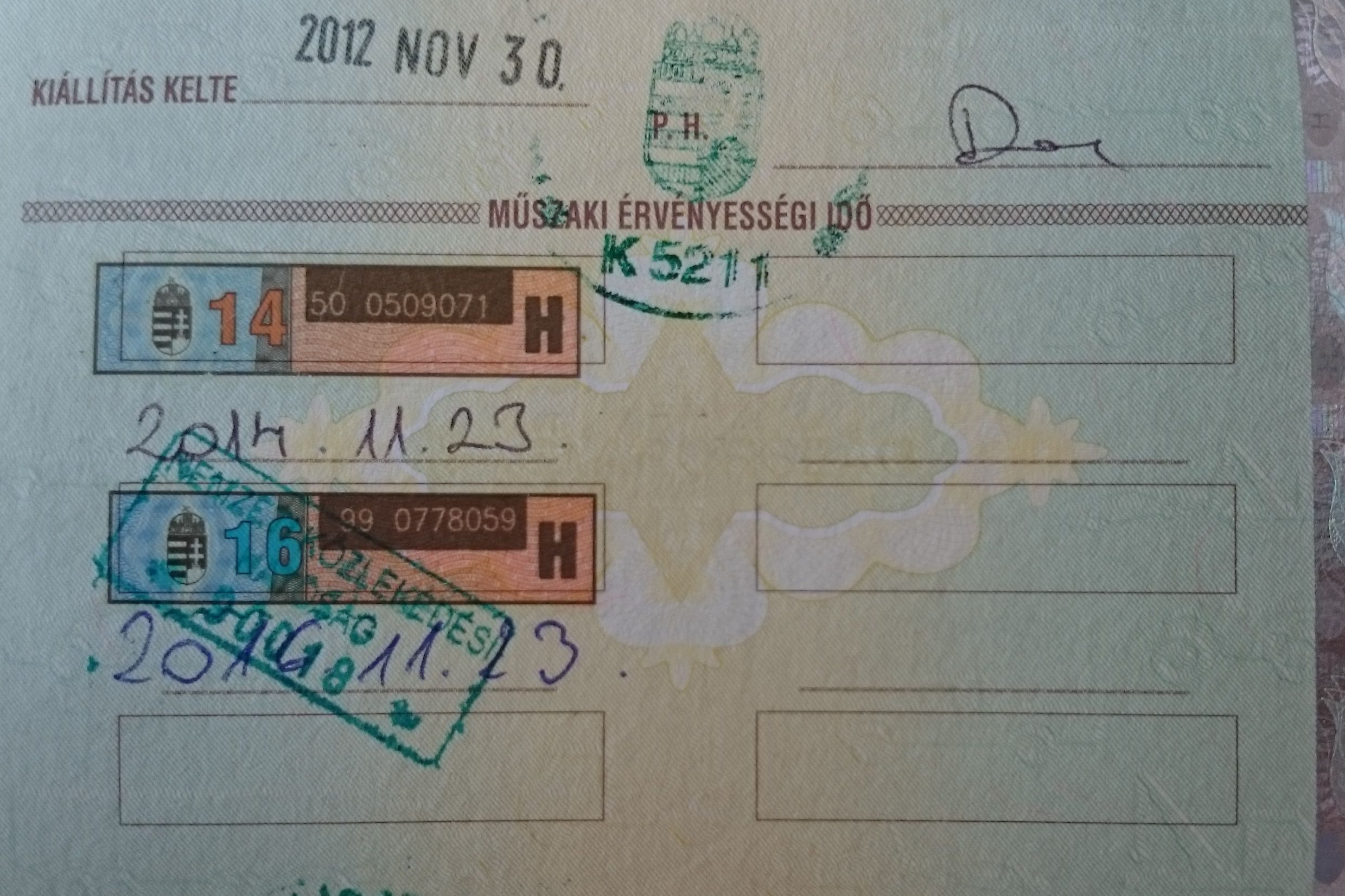 Pontosan így van ahogy HFT írja. Az enyém is 2008 január első heti volt, és 2011 december végén vittem műszakira (2012. jan . kb 6-ig volt műszakija), és még 3 év műszakit kapott.