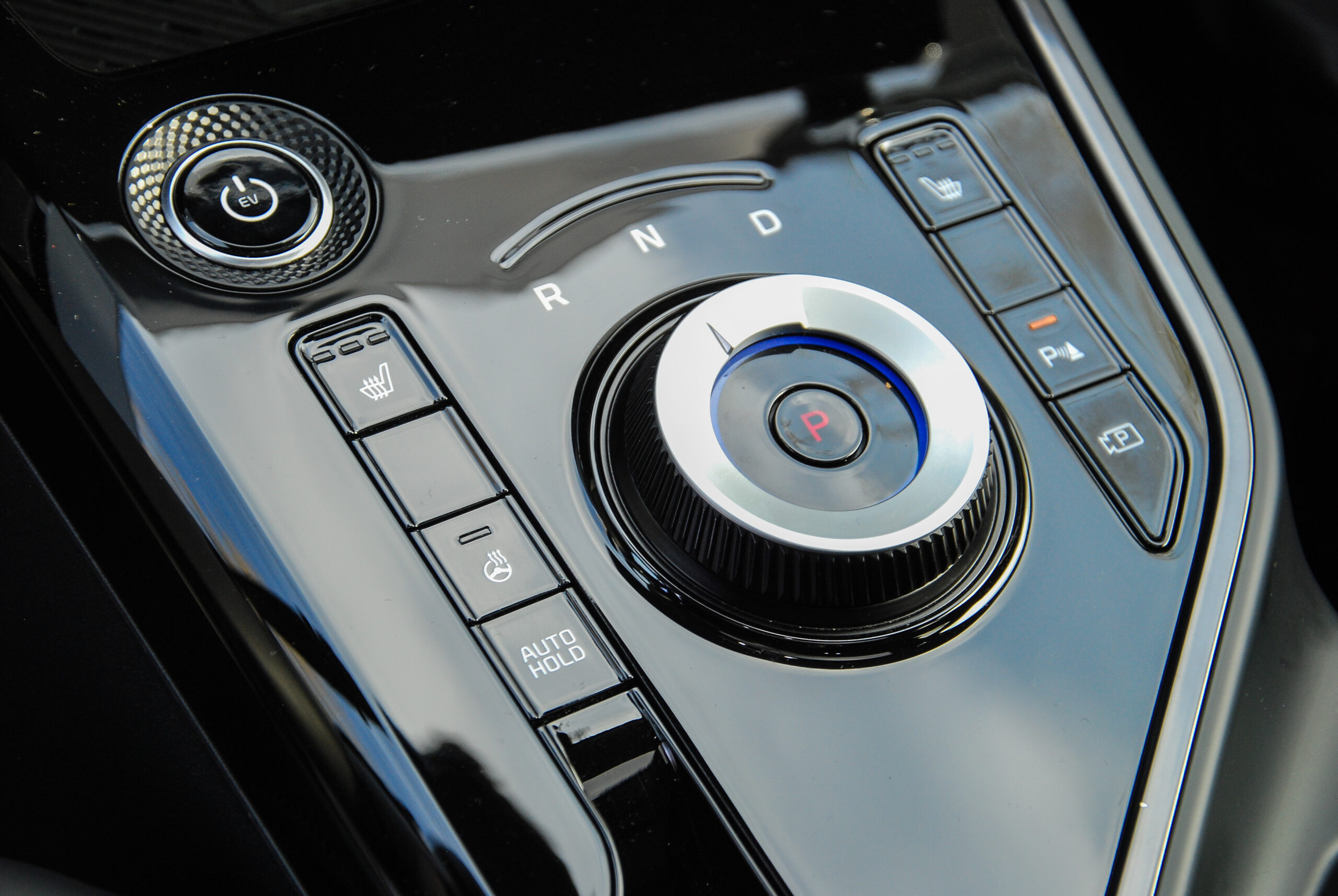 Bent is folytatódik a különleges, de tökéletes ergonómiával találkozó látvány: első blikkre minden újítónak és merésznek tűnik, majd amikor elkezdjük használni, kiderül, hogy mindent a megszokott helyen és módon találunk meg, minden anélkül áll kézre, hogy bármit is keresni kellene. Ebből a szempontból különleges a 10,25 colos digitális műszeregységet és az ugyanekkora központi kijelzőt kiegészítő érintőpaneles vezérlősáv a középső szellőzők alatt, amely gombnyomásra változtatja, hogy épp a kétzónás digitklímát vagy az autó különböző funkcióit vezérli, lényegében háttérbe szorítva az érintőképernyőt ezen a téren. Alatta a már megszokott irányválasztó tárcsa mellett esetünkben ülésfűtést és kormányfűtést is találunk a parkolóasszisztens és az elektromos kézifék gombjain túl.