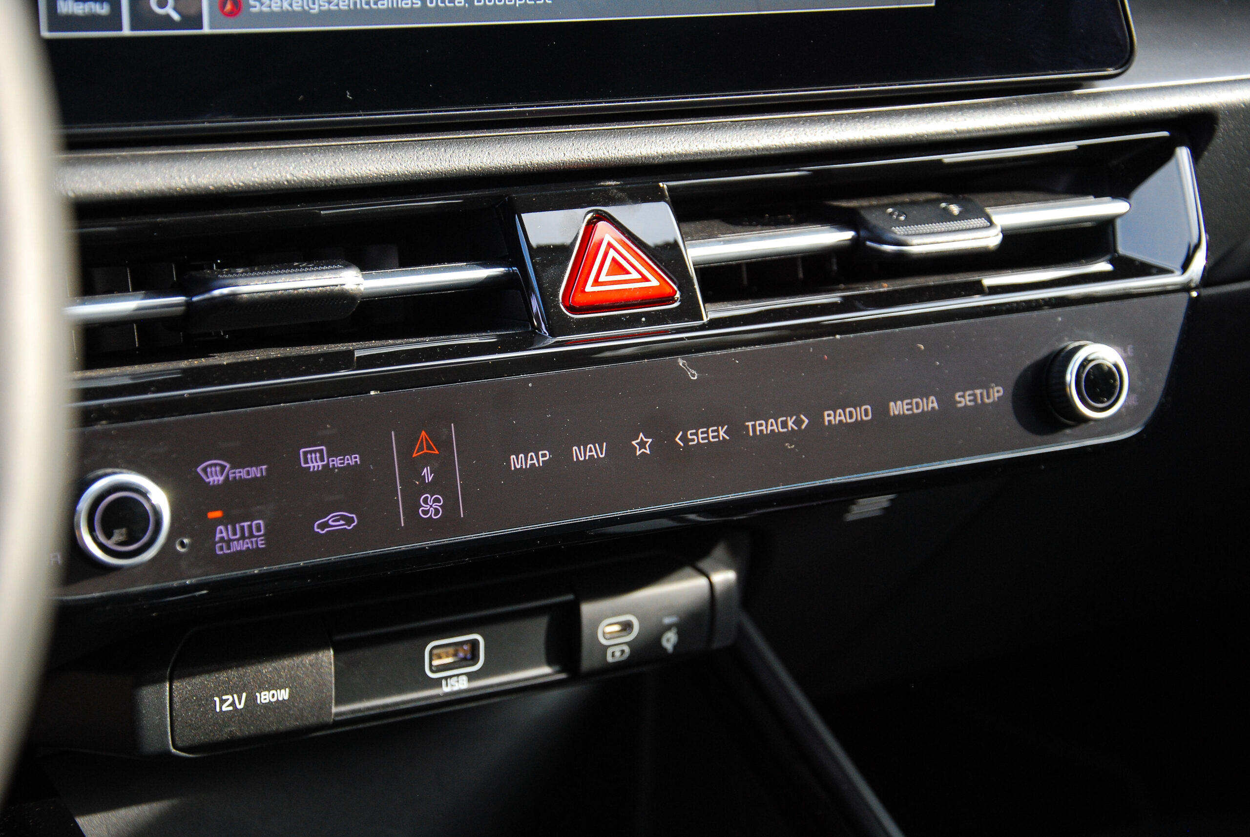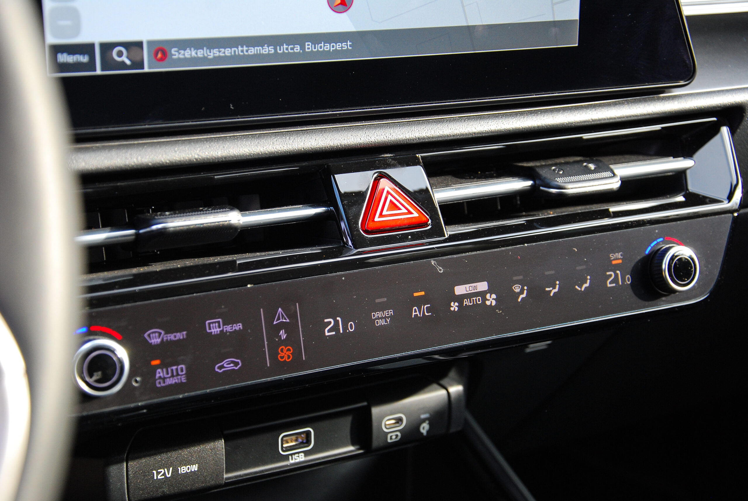 Ha mégis ennél messzebbre mennél, akkor a 80 kilowattos DC töltéssel 41 perc alatt tölthető 80 százalékra az akkucsomag, ami ma már nem olyan nagy szám, de komolyabban belegondolva már ez is elegendő. AC töltéshez Type 2 csatlakozó áll rendelkezésre, amelyen legfeljebb 11 kilowattal tölthető a Niro EV, így nagyjából 7 óra alatt telítődik nulláról. A szabvány konnektorról már inkább napokban mérhető a töltési idő, nálam egy éjszaka alatt nagyjából 150 kilométernyit tudott belevarázsolni az otthoni hálózat. És ha már a saját tapasztalatoknál tartunk: a nálam töltött idejét szinte teljes egészében fagypont körüli autópályázással töltötte a Niro EV, a szükség szülte helyzetekben 3 alkalommal járta meg a teszthét során a Budapest-Szeged távot. Minden alkalommal elég volt a kormányt és az üléseket fűteni ahhoz, hogy élhető hőérzettel utazzunk, ám a közel 400 kilométeres oda-vissza táv, rátöltés nélkül, 110-120 km/órával haladva is rendre kifogott rajta. Minden alkalommal csak egy hajszál hiányzott. Volt, hogy egy mindösszesen 4 perces villámtöltésre álltunk csak meg. Valószínűleg ideális, tavaszi időjárással még akár 130 km/órával is hazaértünk volna, illetve azt se felejtsük, hogy ekkora távoknál már egyébként is megállna a legtöbb sofőr út közben, nem is csak 4 percre.