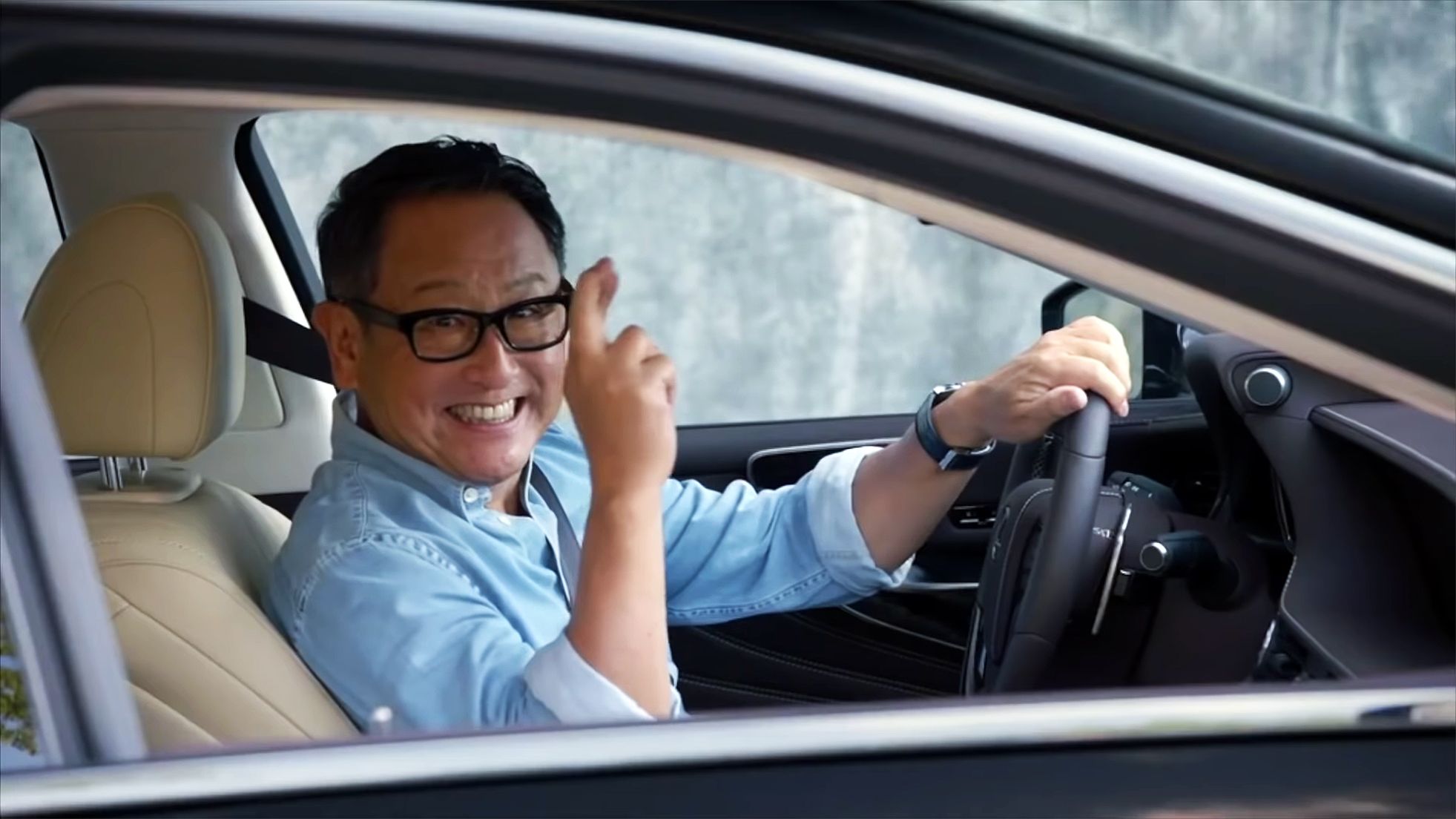 ezúttal nem egy test nélküli kéz halmozta piramisba a pezsgős poharakat, hanem maga Akio Toyoda, a Toyota Motor Corporation elnöke.