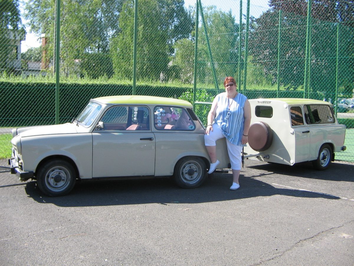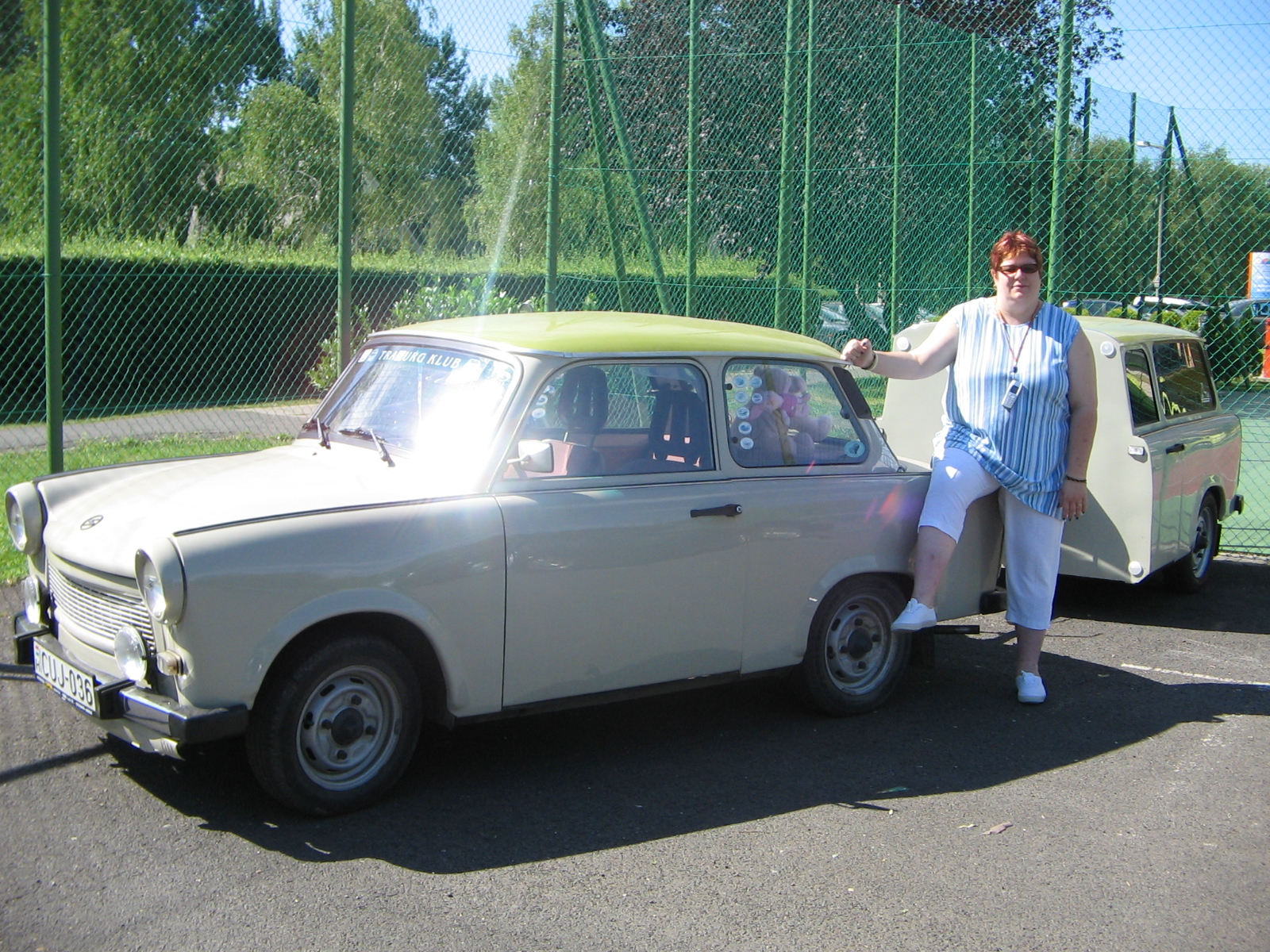 Az autózást is ilyen lazán kezelik, Tünde első Trabantja jelenleg a férje versenyautója, amellyel évi két-három amatőr versenyen veszt részt. Ez a kisautó azért is különleges, mert "Ő" az egyetlen kombi Trabi versenyautó… Ezen kívül van egy utolsó szériás gyári DeLuxe változatú Trabantjuk is, törtfehér színben, zöld tetővel, full extrával. Többek közt automata öv van benne, ködlámpa elől-hátul, krómozott a lökhárítója és van hozzá egy ugyanilyen DeLuxe utánfutó is… nem semmi látvány, de a klubban más érdekességek is akadnak.