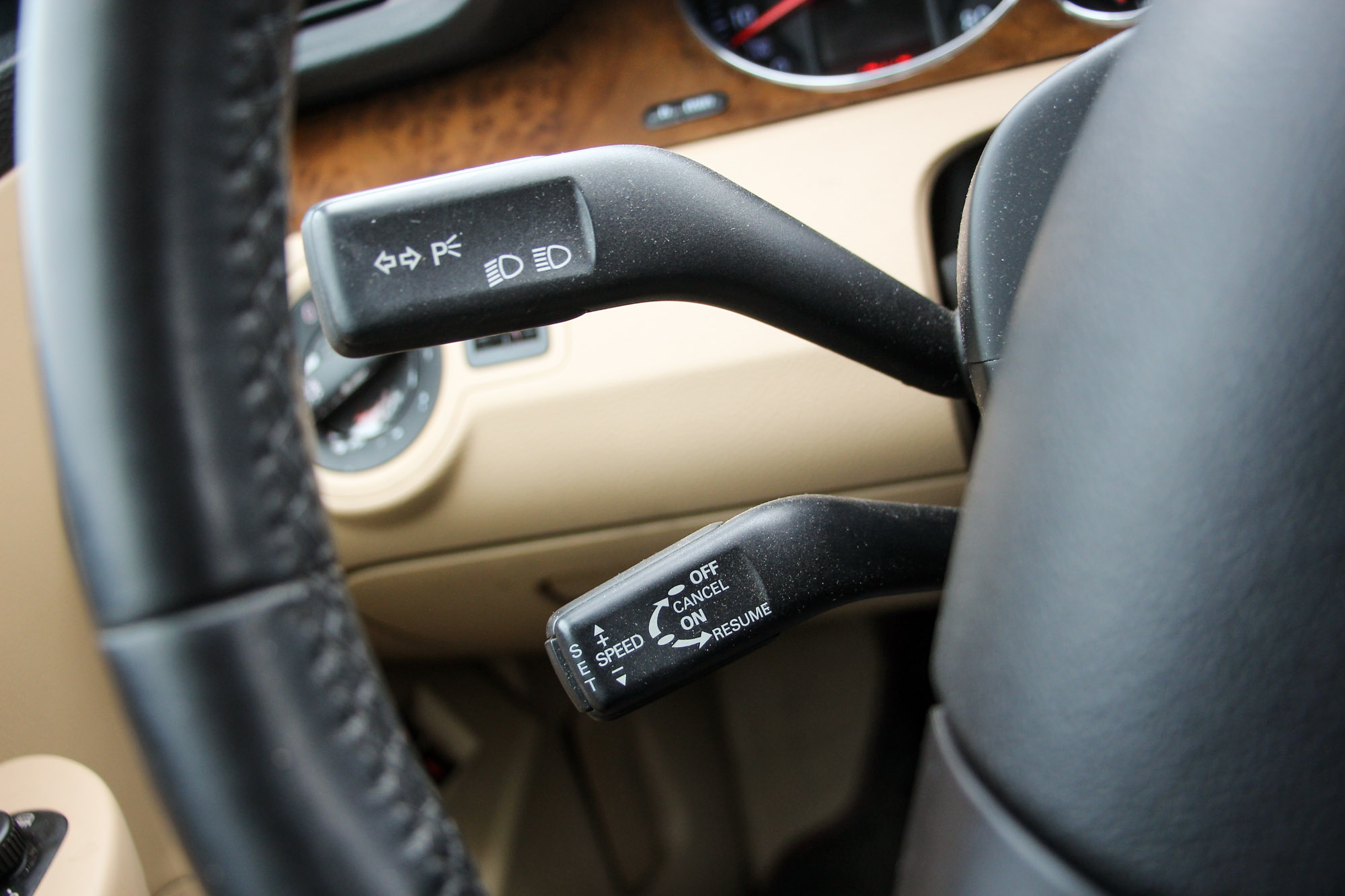 Hangulatos a műszereket körbevevő fabetét, a króm Passat felirat nekem már sok. A kopások tipikus Volkswagen-betegségek, ennél szebb kapcsolót nehezen találunk egy több mint 10 éves Passatban