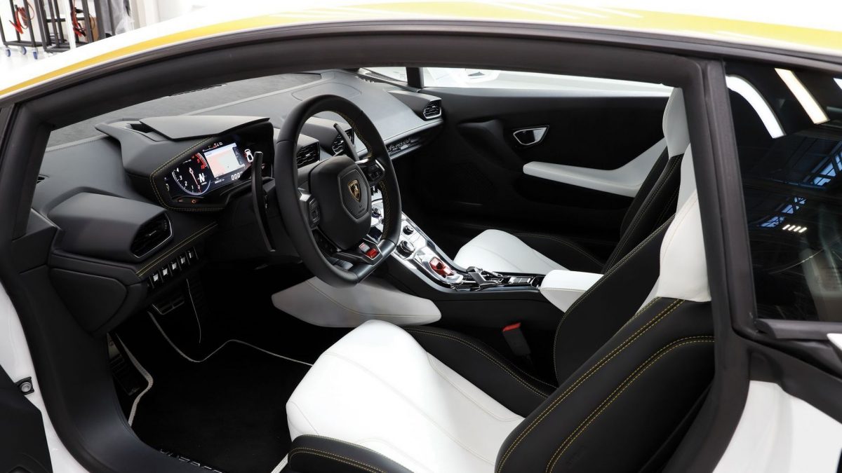 Az autó érdekességei közé tartozik a Bianco Monocerus fantázianevű fehér fényezés és a Giallo Tiberino nevű aranyszínű csíkozás, illetve a fekete-ezüst könnyűfém felniszett. Az utastér sem kevésbé különleges, hiszen a külső dizájnhoz passzoló fehér bőrüléseket kapott, valamint a fejtámlákba varrt Lamborghini feliratot is.