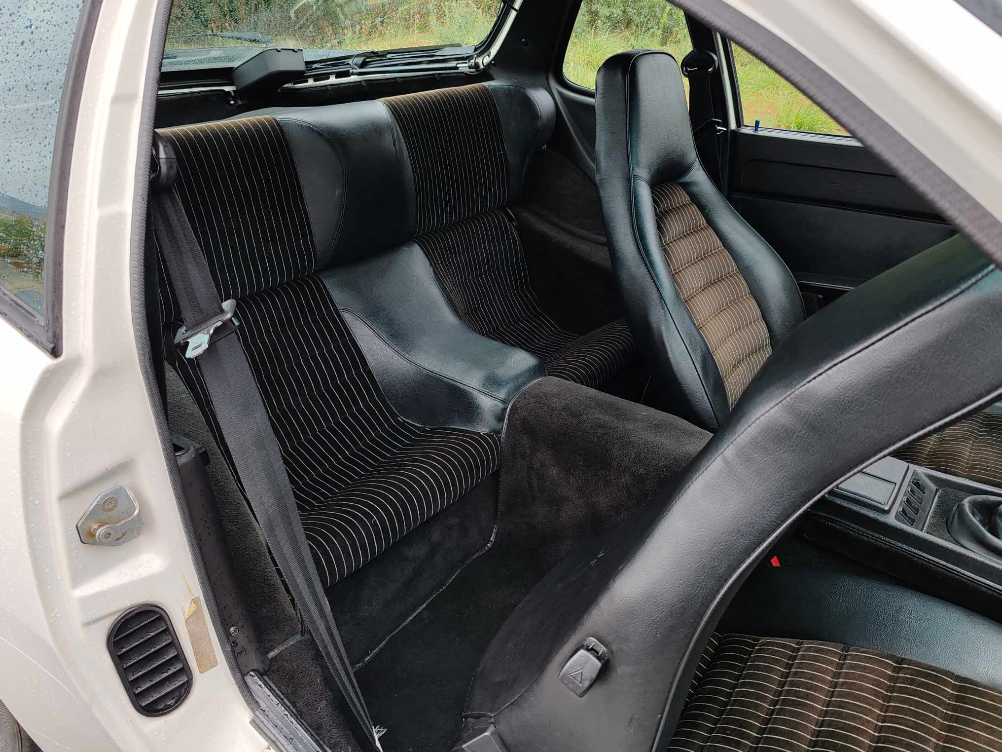 Odabent a klasszikus barna, csíkos kárpit remek kontrasztot állít a hófehér fényezésnek. Elsőre, pedig nem is gondolnánk, hogy milyen sok hely van a beltérben. Meglehetősen kényelmes a helyzet két fő számára, de szükség esetén még a hátsó ülésekre is be lehet merészkedni.