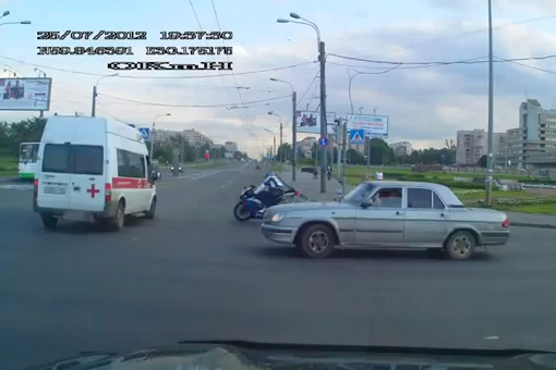 A most mellékelt felvételen fantasztikus egyidejűség figyelhető meg: történik egy baleset, és a mentő máris a helyszínen van. Az oroszok nem is hajtanak tovább, mint taiwani kollégáik, hanem szinte azonnal a pórul járt motoros segítségére sietnek, aki nagyot csattant - pont a mentővel, de úgy tűnik, élve megúszta a súlyos esést. A film elején csak haladunk az úton, az akcióhoz görgessék a filmet 1:00-hoz!