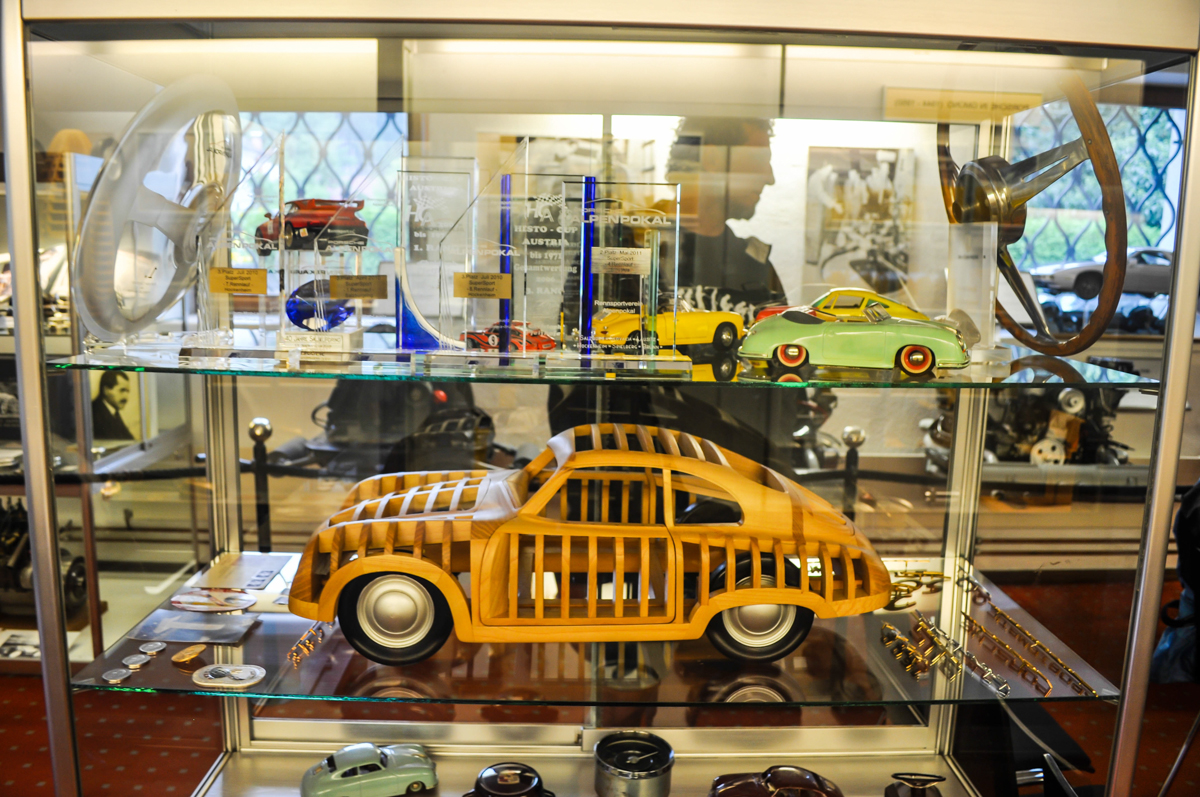 Nagyszerű gyűjtemény és élmény. A múzeum sötét hangulata ad valami varázst az egésznek. Mikor belép az ember, rögtön rengeteg makettel, autómodellel találja szembe magát, amik között megtalálhatjuk a korszakalkotó típusokat és a mérföldköveket az autósportból és a civil autós világból egyaránt. Az alsó emeleten kivetítőkön filmeket nézhetünk, ahol a Porsche múltjáról készült felvételeket láthatunk. A következő teremben egyik személyes kedvencem, egy berendezett műhely kapott helyet, ahol betekintést nyerhet a magamfajta fiatal is abba a korba, amikor az egész elkezdődött. Itt található még a fa, valamint az alumínium 356-os is, valamint Christoph Pfeifhofer egyik versenygépe. Mikor megpillantottam, rögtön éreztem, hogy ez lesz az én helyem. Kiskoromat idézte, amikor még Bódis Kálmánék is ilyet hajtottak a Hungaroringen, gyönyörű sárga festésben.
