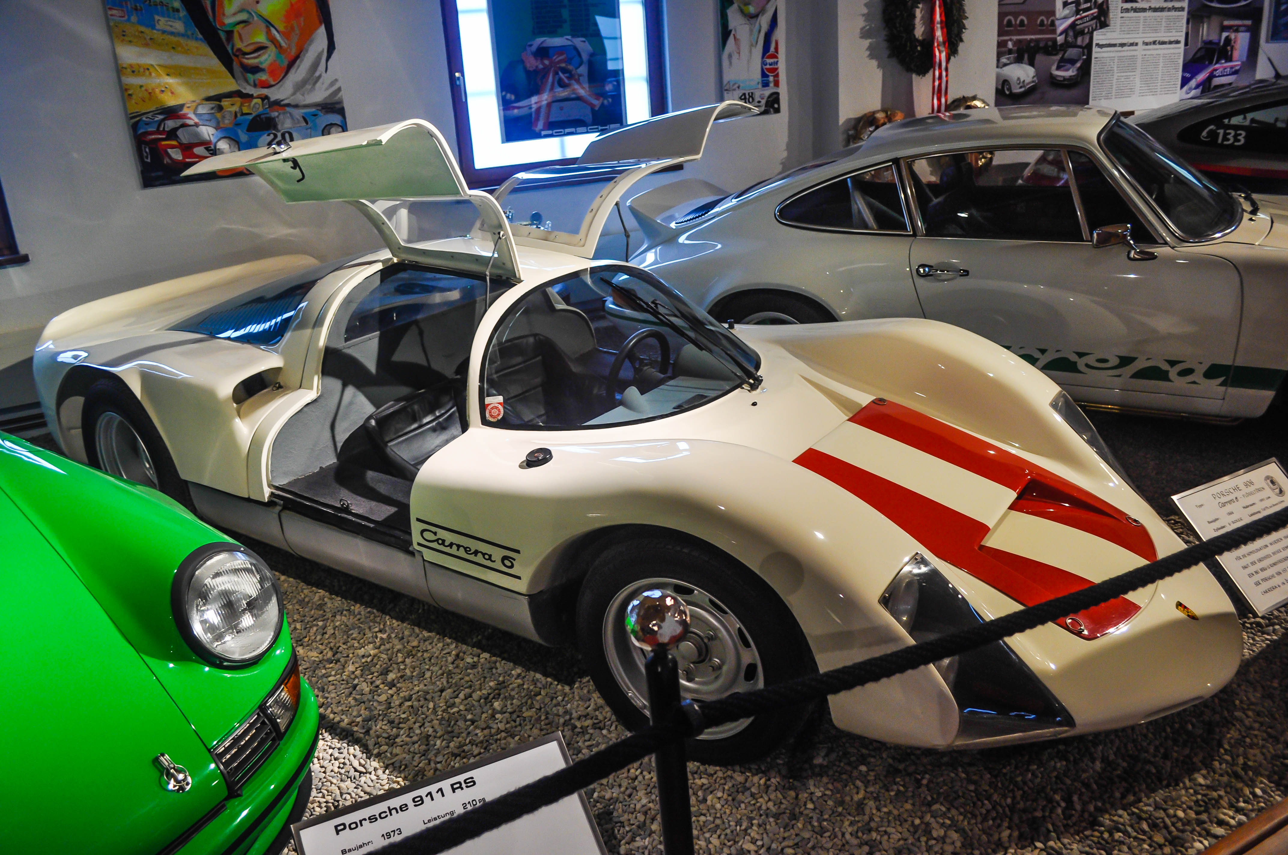 Autósport. Nem véletlenül hagyom a végére a témát. Ez áll legközelebb a szívemhez. Több olyan típus is megtalálható itt, ami nemcsak egyedülálló, hanem régóta szerepelt bakancslistámon, hogy láthassak egyet. Kezdeném a sor legkisebb és egyben legöregebb tagjával, a Porsche 906-ossal. A veterán autósport legendából 50 darab épült utcára, hogy megkapják az FIA homologizációt. A legendás Carrera 6-os olyan autókat győzött le, mint az akkori kor olasz büszkesége, a Ferrari Dino, de Le Mansban is szép sikereket ért el. Külön érdekesség, hogy jelenleg ez az egyetlen Carrera 6-os, ami fellelhető Ausztriában.