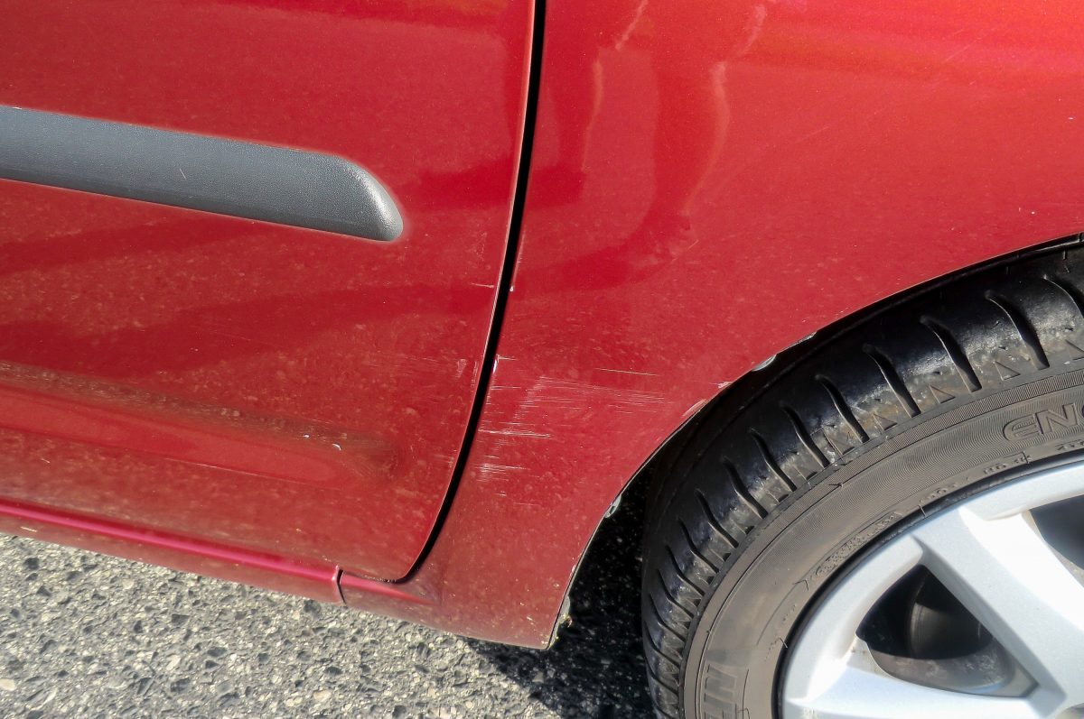 Elöl sem volt olyan mértékű horpadás, hogy az látványos legyen, de a kép közepén azért látható némi fénytörés a karcolt, horzsolt felületen is