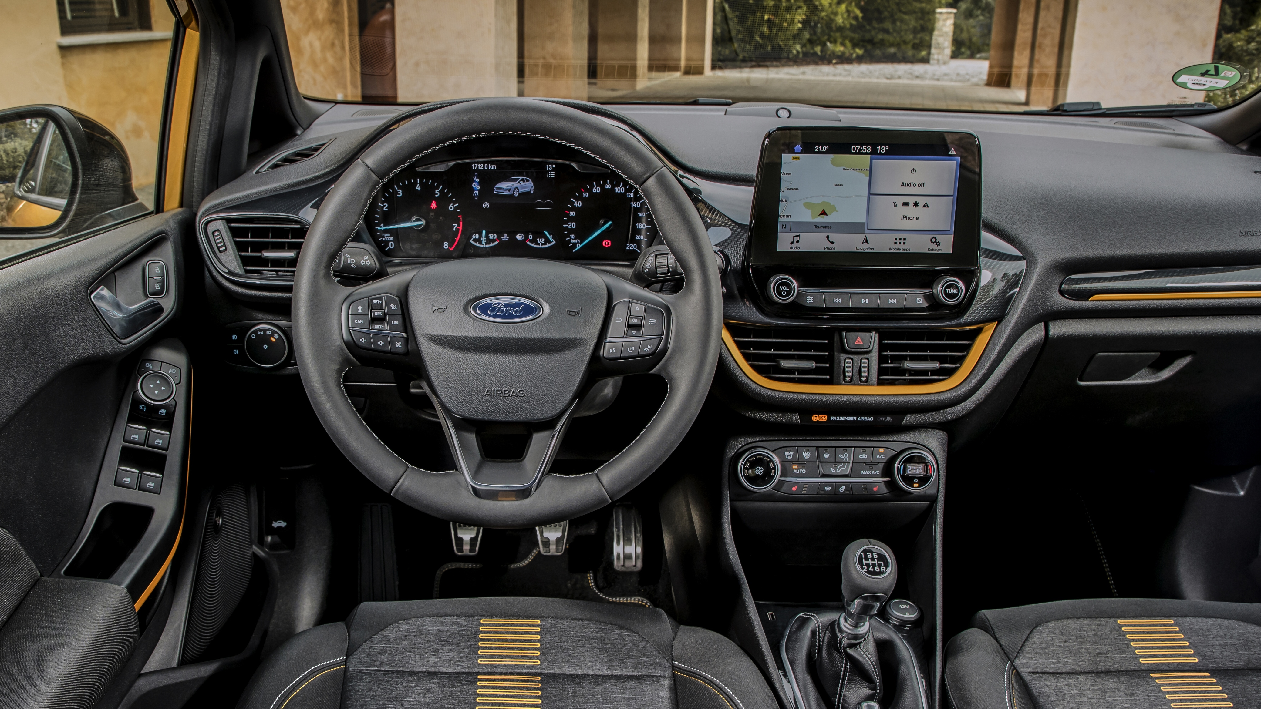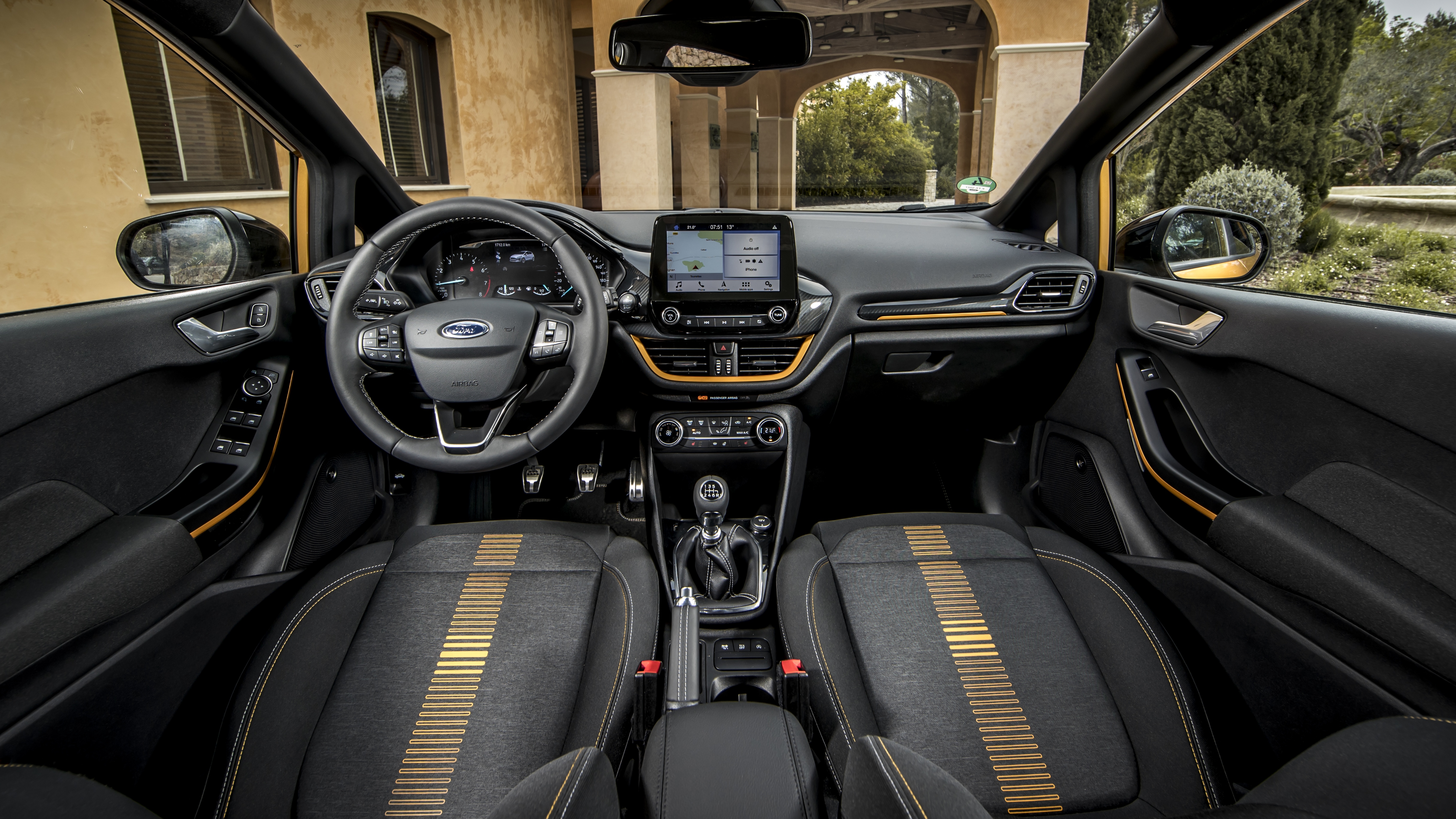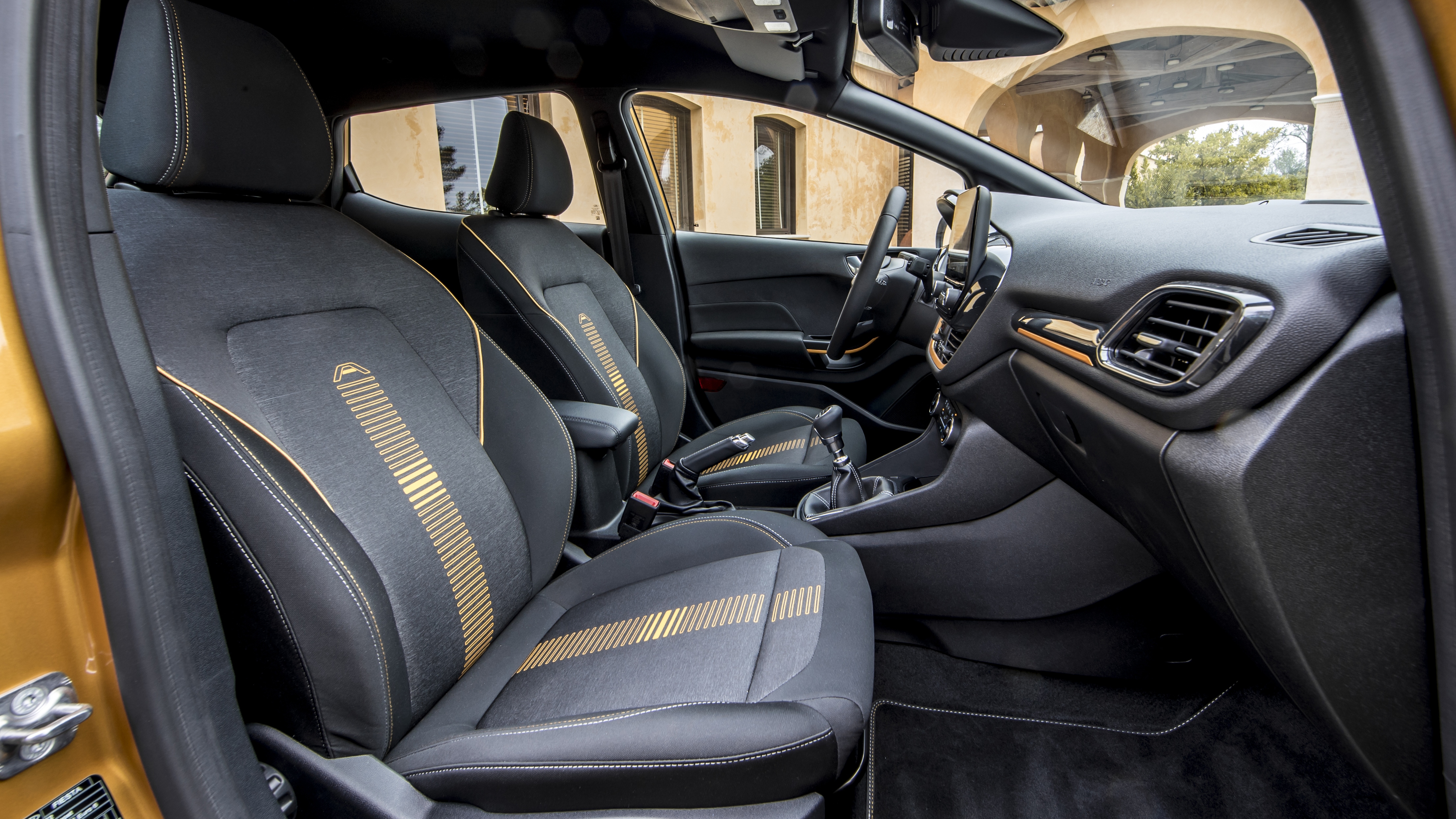 Továbbra is ugyanazok a Michelin Pilot Sport gumik feszülnek alatta, amik az alap Fiestán is, tehát nem máshová hangolták, mint aszfalt útra. Az Active ennek megfelelően is viselkedik, ahogyan azt már megismertük, úttartása, kanyarstabilitása egyszerűen kiváló ezekkel a papucsokkal. Menet közben szinte semmit nem érezni abból, hogy a karosszéria magasabban futna, nincsen plusz oldaldőlés, de egy nagy félelmem is eloszlott, ugyanis nem az történt, mint a Merci GLA-nál. A futómű emelgetésével nem keményedett fel a futás, sem az úthibák, sem a fekvőrendőrök nem dobják meg kellemetlenül az Active-ot. Mivel földúton nem jártunk vele, arról egyelőre nem nyilatkoznék, itthon ki fogjuk próbálni, hogyan teljesít akár sátorhely keresése közben.Egészen tágas a beltér, furcsa a dupla A-oszlop, de mivel maradt a korábbi Fiesta struktúrája, így érthető, hogy ez is