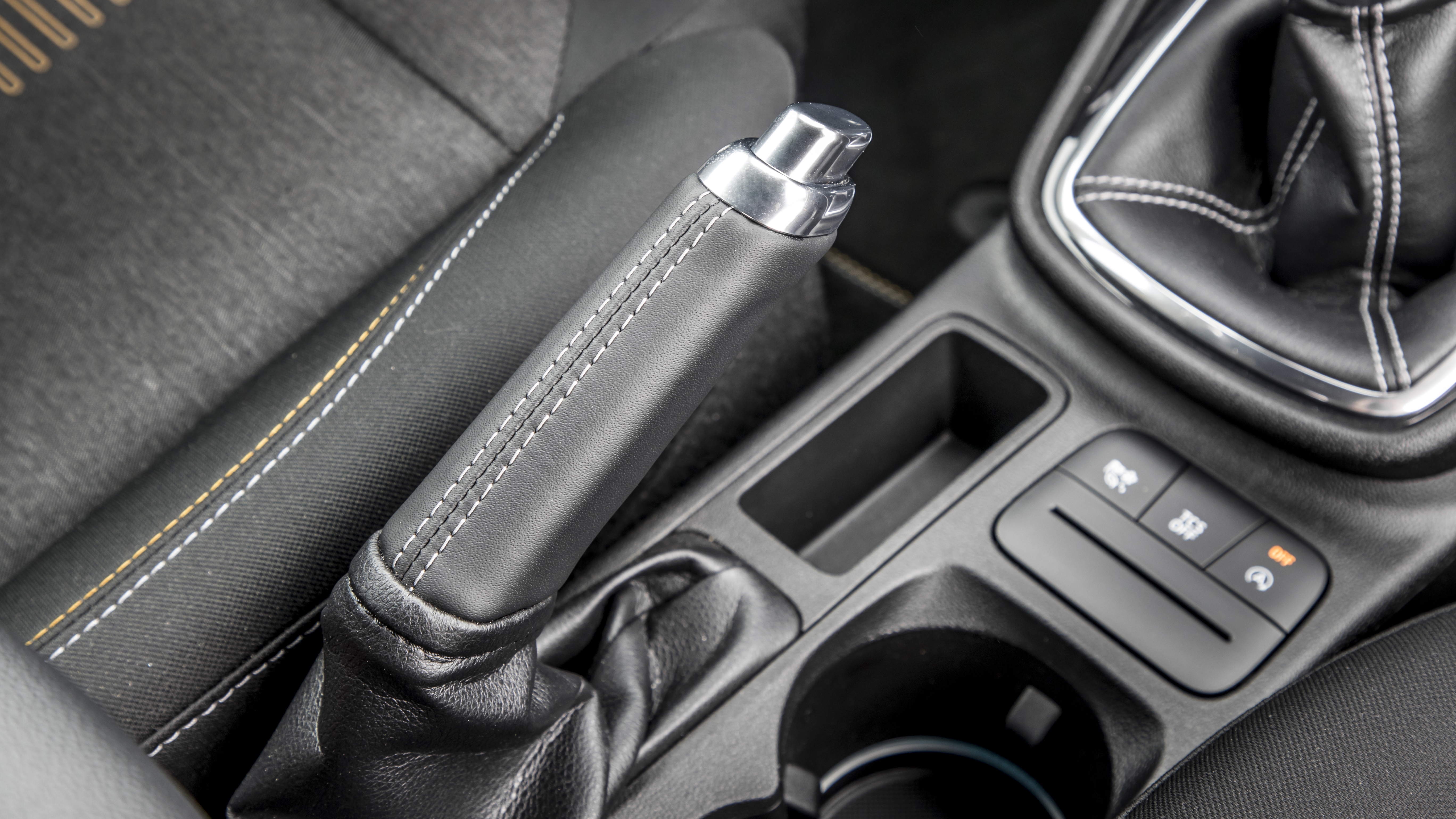 A hagyományos kézfék mellett találjuk az új menetmód választó kapcsolót, a zászló baki, nincs Sport mód, csak Normál, Eco és Csúszós Út