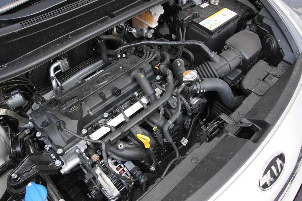 Az 1,2 literes, változó szelepvezérléses, 85 lóerős benzinmotor szeret pörögni, maximális teljesítményét 6 000, nyomatékát 4 000 1/min fordulaton adja le. Indítás után nagyon halkan, már-már némán jár, a zajmérésünk szerinti 42 db(A) figyelemreméltó, és városban hajtva a Rio csendesebb konkurenseinél, például a